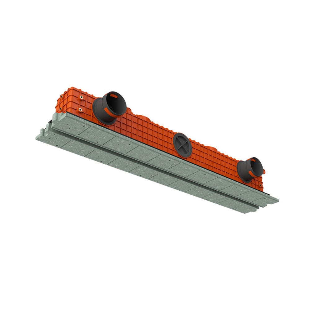Modelul este compatibil cu 2 conexiuni pentru tubulatură flexibilă de 75 mm sau 90 mm și poate fi utilizat în montaj vertical sau orizontal. Producătorul menționează și o cutie de distribuție din material antistatic și antibacterian, cu rol în menținerea igienei și a unei exploatări fiabile, precum și o bază rigidă realizată din material reciclat, concepută pentru a forma împreună cu placa de gips-carton o structură rezistentă, cu risc redus de fisurare în zona de finisaj.