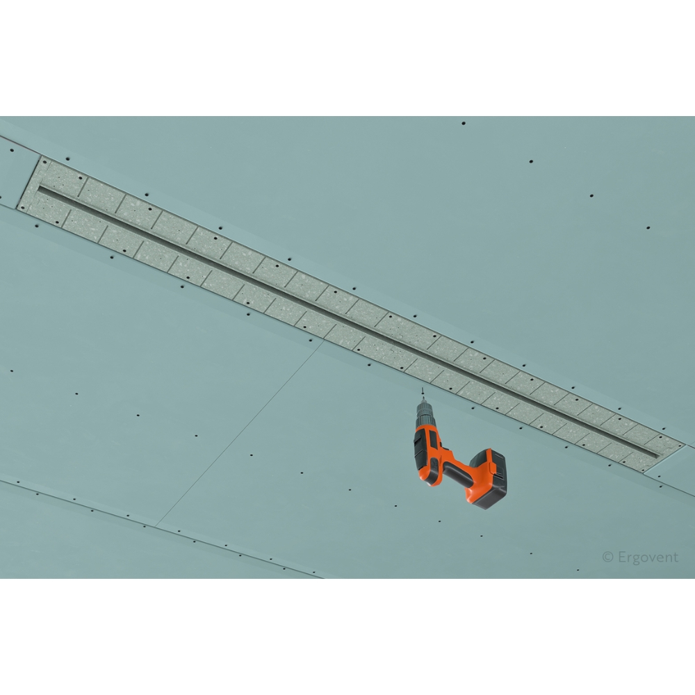 ERGOVENT LINEO PRO PUZZLE este un difuzor liniar fără ramă, dezvoltat pentru integrare discretă în plafoane și pereți din gips-carton, acolo unde se urmărește un finisaj curat și o distribuție controlată a aerului. După montaj și finisare, rămâne vizibilă doar fanta liniară de 20 mm, ceea ce îl face potrivit pentru interioare moderne, rezidențiale sau comerciale, în care elementele terminale de ventilație trebuie să fie cât mai puțin vizibile. Lungime de 1050 mm, înălțime de 161 mm și lățime de 194 mm.