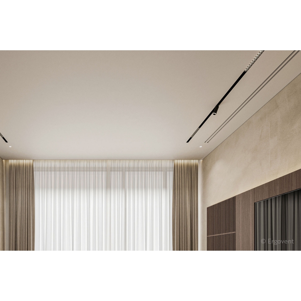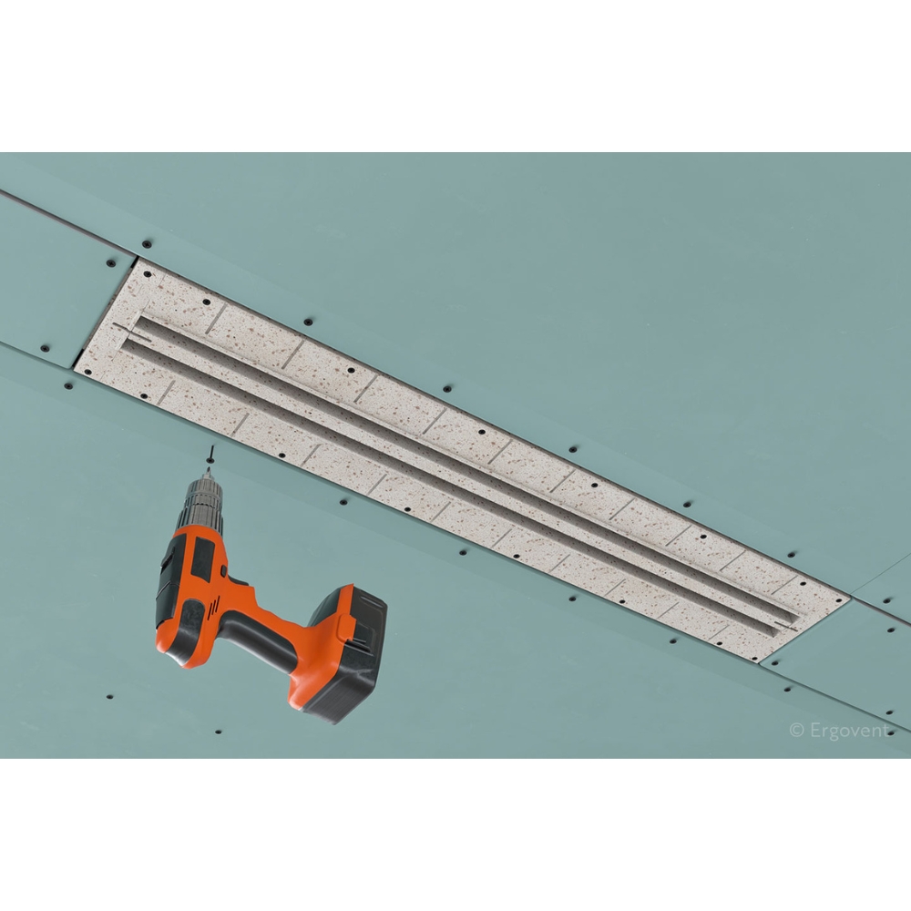 ERGOVENT LINEO PRO PUZZLE two-slots este un difuzor liniar de ventilație cu montaj ascuns, conceput pentru integrare discretă în plafoane și pereți din gips-carton. Modelul se fixează direct pe profilele de gips-carton, iar după finisare rămân vizibile doar cele două fante liniare, ceea ce îl recomandă pentru interioare moderne în care terminalele de ventilație trebuie să fie cât mai puțin vizibile, dar bine integrate în designul încăperii.