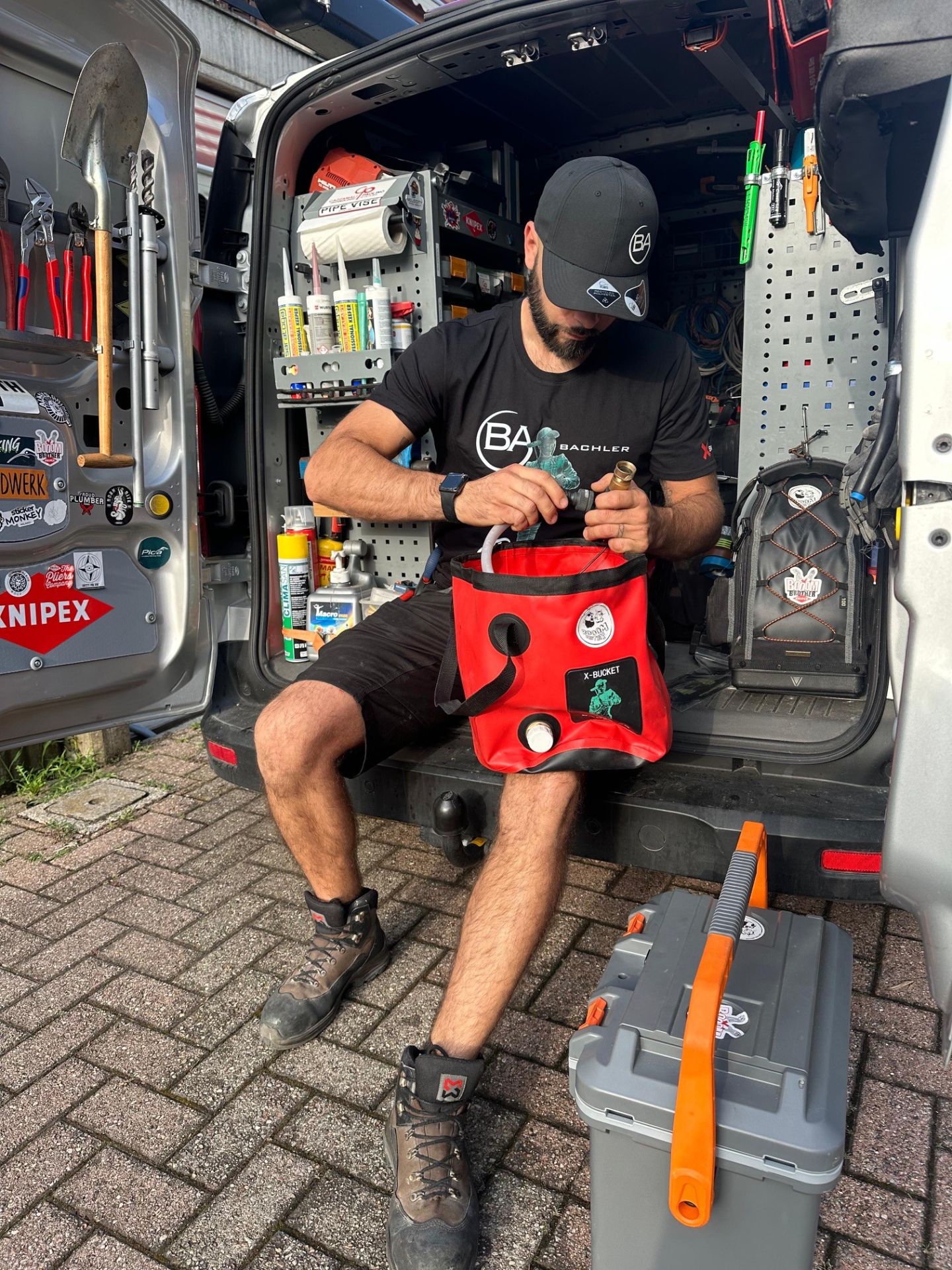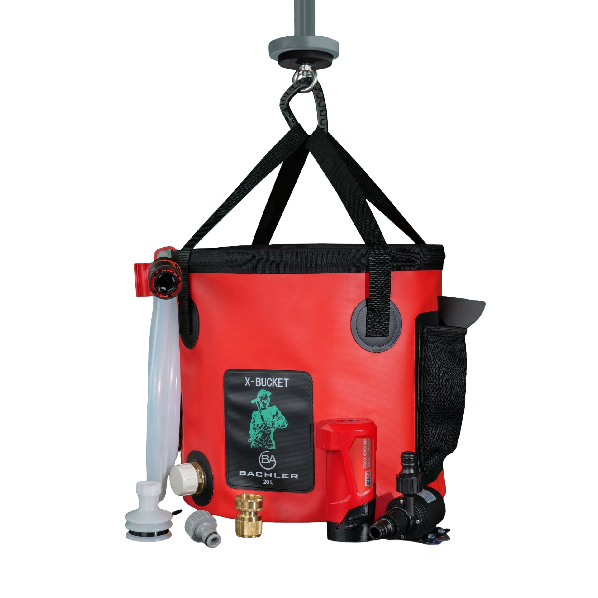 BACHLER - Recipient flexibil X-BUCKET PREMIUM 20 L pentru colectare, evacuare și pompare lichide este conceput pentru captarea, dirijarea, evacuarea și pomparea controlată a lichidelor în timpul intervențiilor tehnice. Recipientul are construcție flexibilă din PVC, este dublu ranforsat și dispune de margine superioară modelabilă, ceea ce permite adaptarea formei în funcție de spațiul de lucru și de poziția punctului de scurgere. Datorită mânerelor integrate, poate fi transportat sau suspendat, fiind potrivit pentru lucrări de service la instalații de încălzire, sanitare și HVAC, pentru goliri locale și colectarea scurgerilor accidentale. Configurația include pompă externă tip Plug & Play, adaptoare dedicate și acumulator Li-ion, ceea ce permite intervenții mai eficiente în teren și evacuarea lichidului direct din zona de lucru. Este o soluție practică pentru aplicații profesionale unde este necesară atât colectarea, cât și pomparea controlată a lichidului.