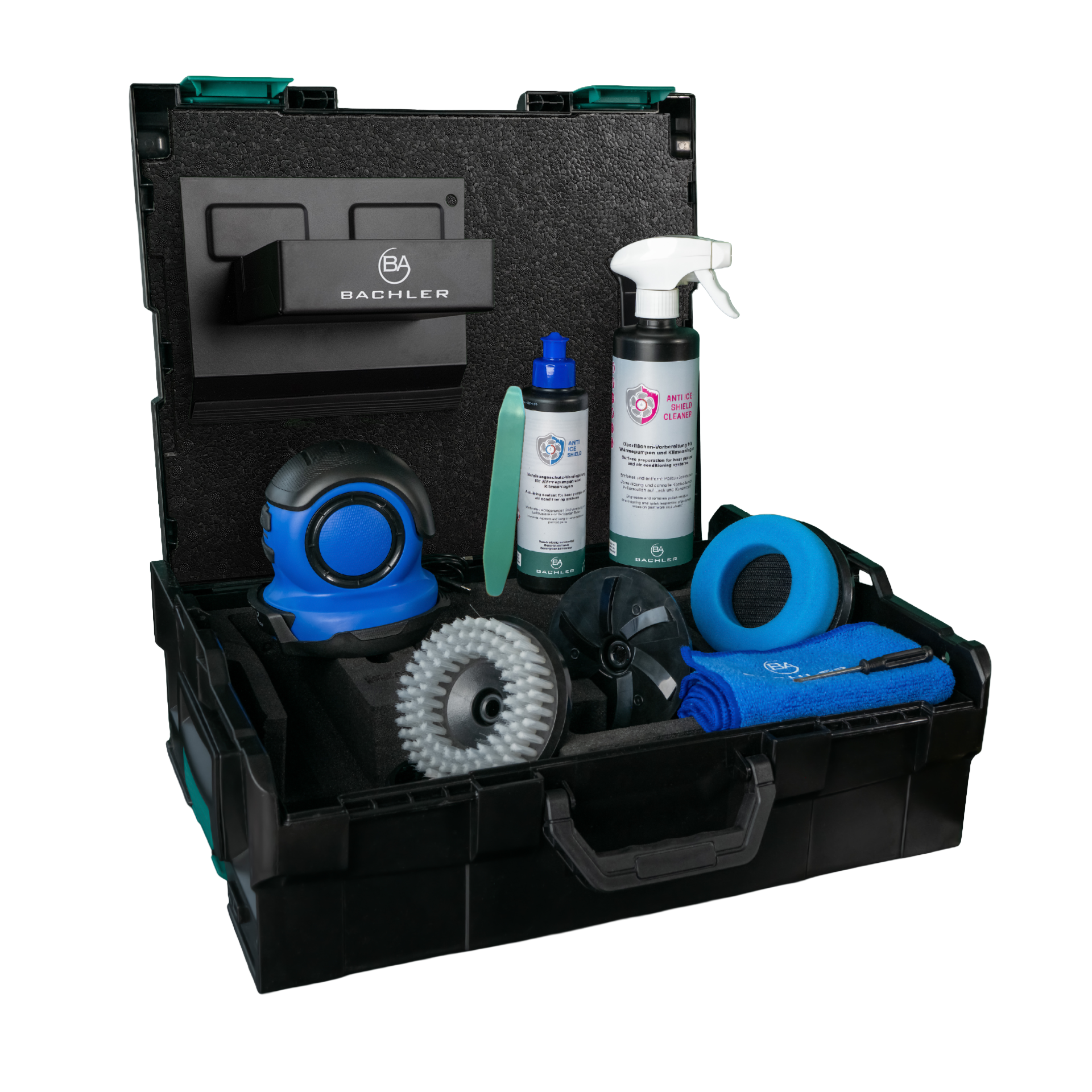 Set de întreținere Anti Ice Shield pentru pompe de căldură și aparate de aer condiționat, în L-BOXX este conceput pentru pregătirea, curățarea și protejarea suprafețelor expuse la murdărie, umezeală și depuneri de gheață în exploatarea echipamentelor HVAC. Configurația setului permite curățarea suprafeței înainte de tratament, aplicarea protecției dedicate și prelucrarea zonelor mai greu accesibile, astfel încât intervenția de întreținere să fie realizată controlat și uniform. Echiparea este livrată în valiză L-BOXX 136 și este adecvată pentru lucrări de mentenanță la pompe de căldură și aparate de aer condiționat, în special în zone unde este necesară reducerea aderenței murdăriei și limitarea formării gheții pe suprafețele tratate.