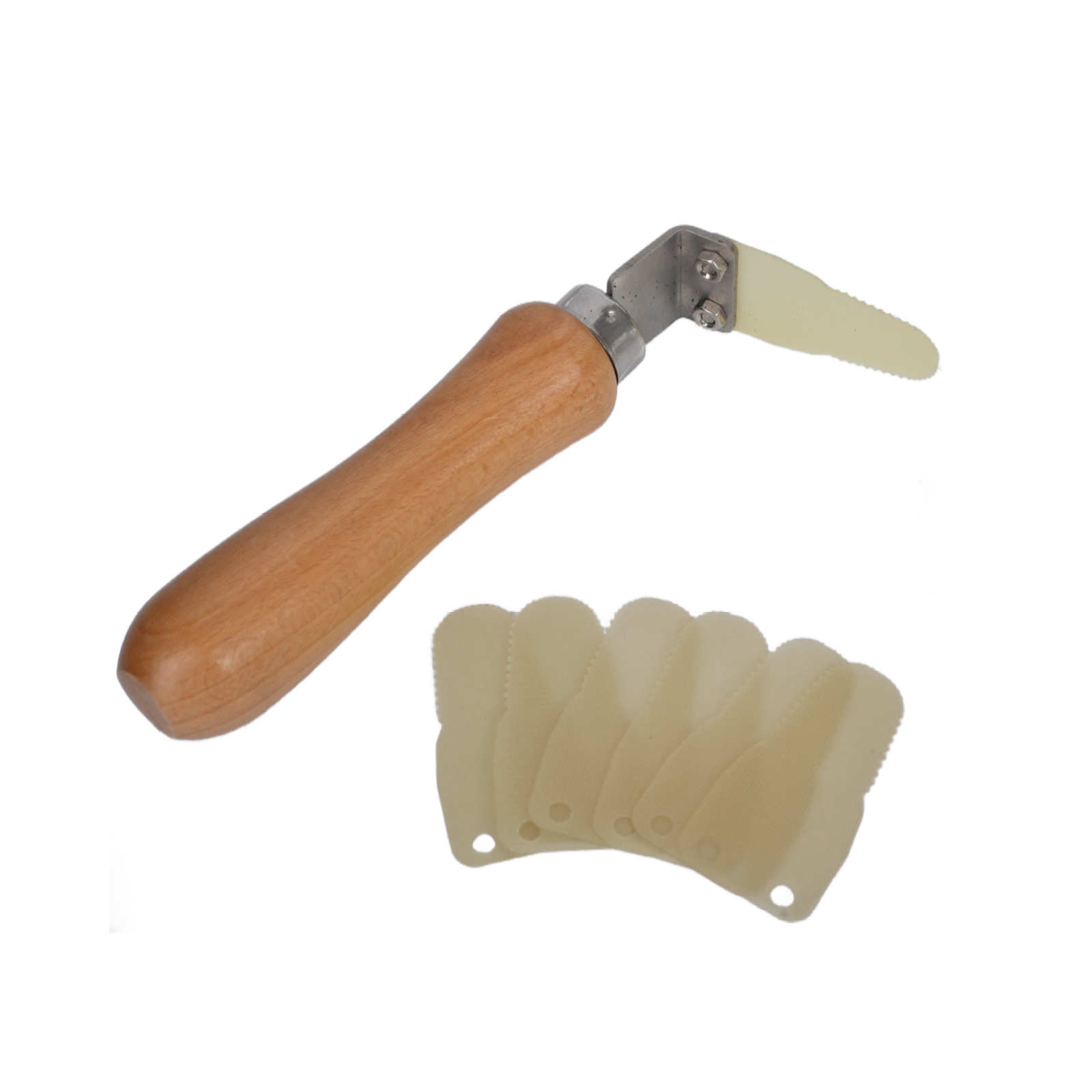 - Spatulă pentru curățarea schimbătoarelor de căldură, cu capăt zimțat din plastic, 0,5 mm;