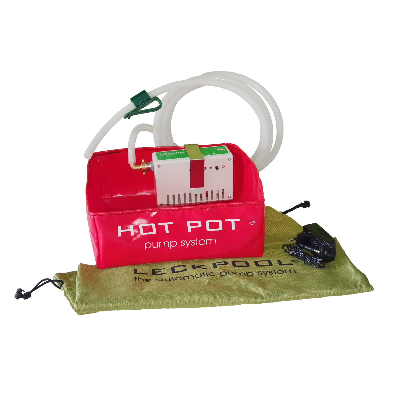BACHLER - Sistem HOT POT pentru colectarea și evacuarea scurgerilor, cu pompă controlată electronic și acumulator, este conceput pentru intervenții profesionale în situații de scurgeri, goliri locale și reparații la cazane, conducte, racorduri, radiatoare, boilere și alte componente cu apă din instalații. Pompa integrată este controlată electronic, funcționează la joasă tensiune și este prevăzută cu măsurare a nivelului apei, ceea ce permite evacuarea automată a lichidului colectat și eliberează operatorul de supravegherea permanentă a procesului. Documentația tehnică menționează că sistemul poate funcționa în regim de rețea, pe acumulator sau în regim de alimentare neîntreruptibilă, iar pompa beneficiază de soft-start și de o logică de control care reduce oscilațiile de funcționare. Sistemul este adecvat pentru utilizare în domeniul instalațiilor, pentru lichide neinflamabile, cu debit de până la 10 l/min, înălțime de pompare de până la 5,5 m, presiune maximă de 0,55 bar și temperatură maximă a lichidului de 60°C. Bazinul flexibil de colectare poate fi modelat după zona de lucru, ceea ce facilitează captarea lichidului în spații dificile sau înguste.
