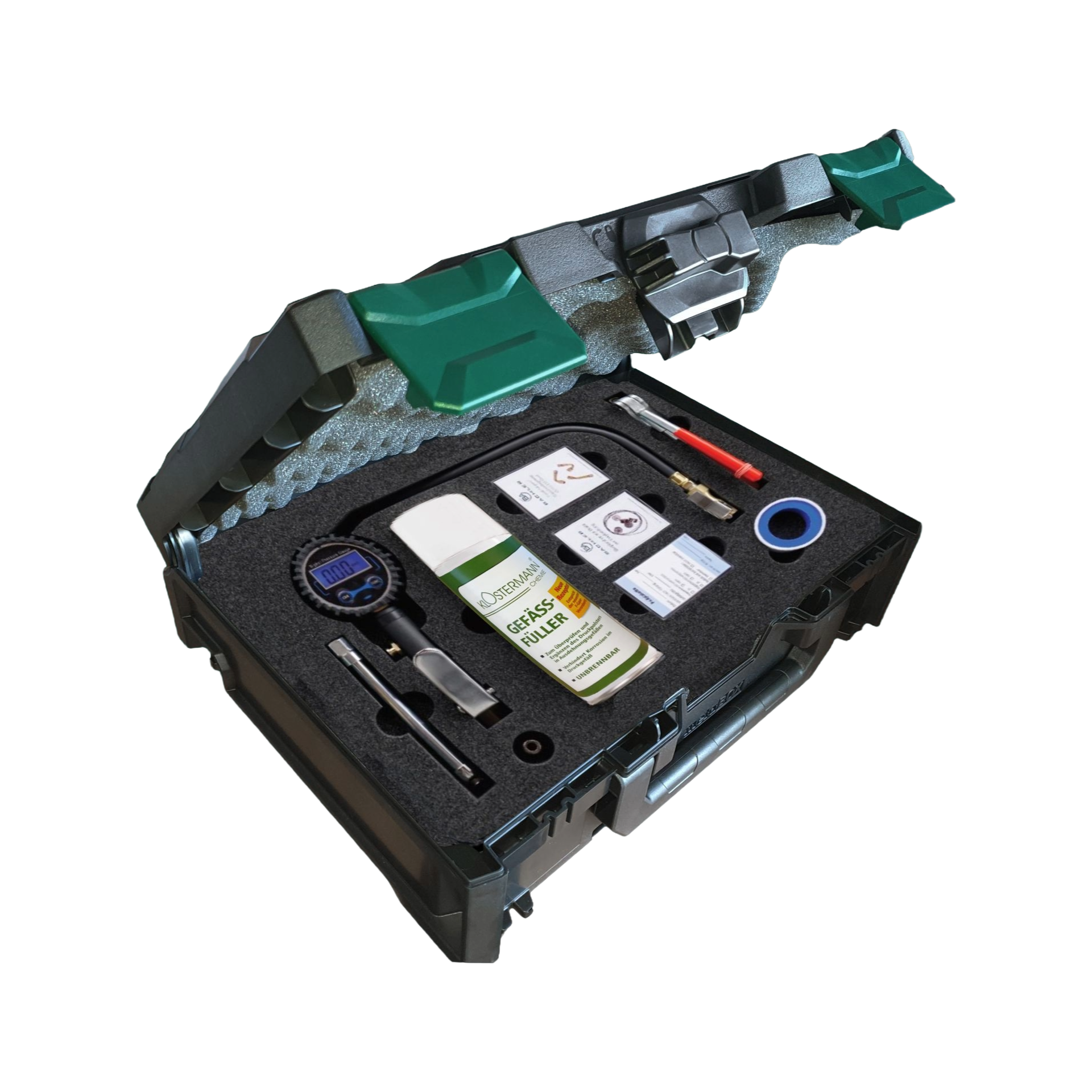 Trusa profesională pentru testarea și umplerea vaselor de expansiune cu membrană este concepută pentru intervenții de verificare, măsurare și reumplere a vaselor de expansiune utilizate în instalațiile de încălzire și în aplicațiile HVAC. Configurația trusei permite controlul presiunii și conectarea corectă la vasul de expansiune, oferind în același timp accesoriile necesare pentru racordare, sigilare și etichetare după intervenție. Echiparea este organizată într-o valiză metaBOX M118S cu inserție din spumă, ceea ce asigură protecția componentelor și utilizarea practică în lucrări de service și mentenanță în teren.
