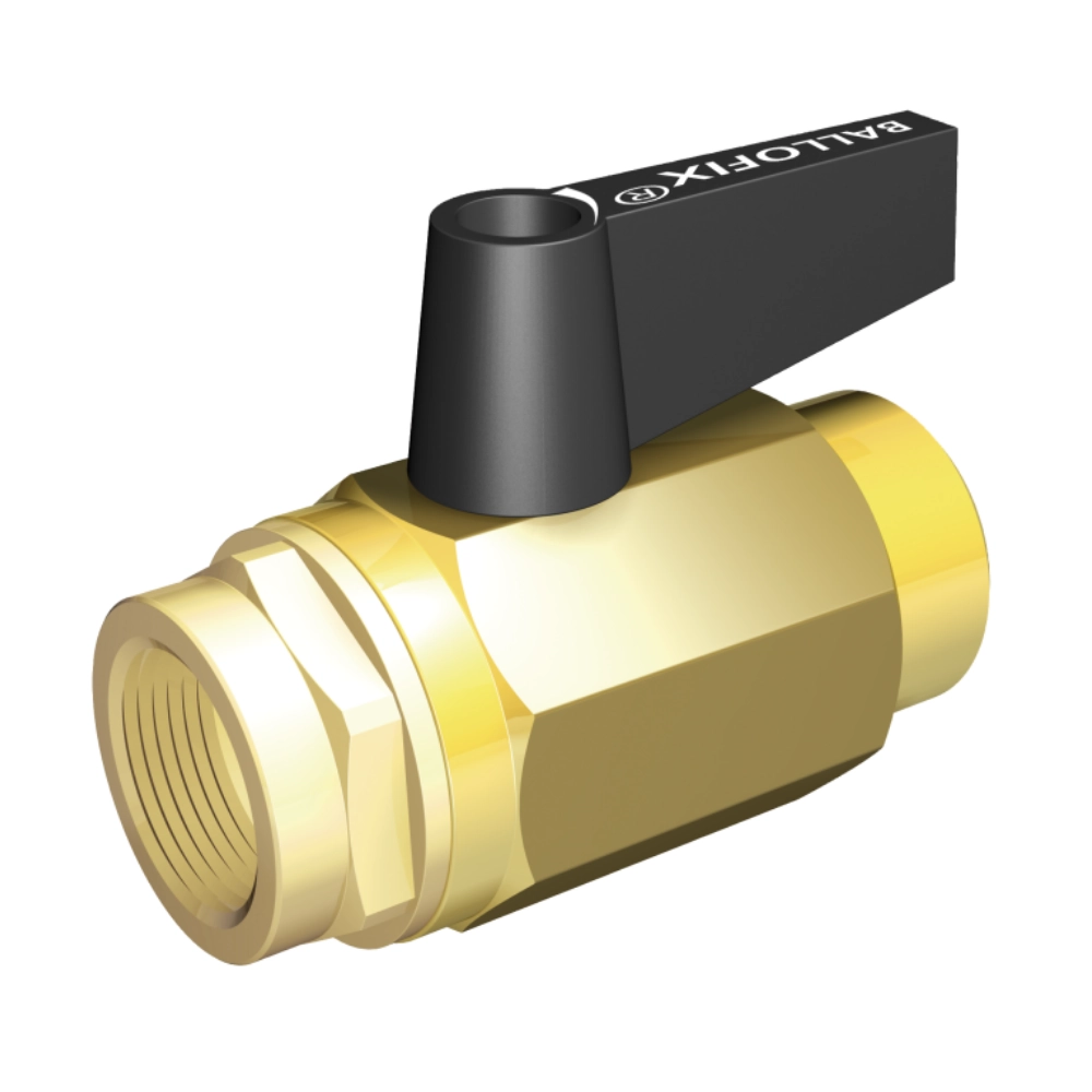 Broen Ballofix full flow ball valve cu mâner, cu două filete exterioare (BSPP), este destinat aplicațiilor de apă potabilă, încălzire, răcire și aer comprimat. Realizat din alamă CW614N cu etanșare EPDM, fără finisaj suplimentar, echipat cu mâner Ballofix negru.