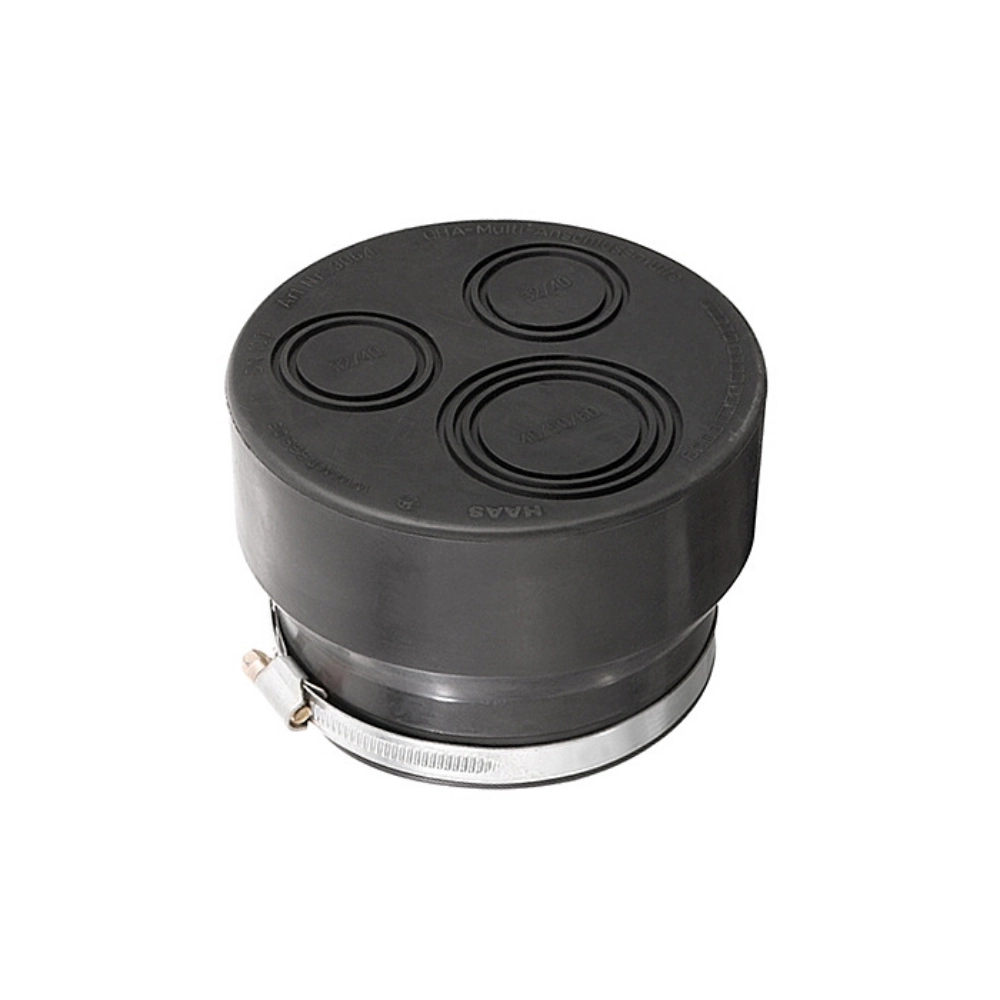 Colier de racord multiplu OHA DN 100/110, destinat racordării până la trei conducte de evacuare din materiale diferite la coloane de fontă, pentru scurgeri fără presiune în interiorul clădirilor. Configurația include 2 racorduri DN 32/40 și 1 racord DN 40/50/60. Fabricat din cauciuc EPDM rezistent la îmbătrânire, intemperii și agenți chimici, prevăzut cu colier metalic DIN 3017-1, calitate W1. Asigură etanșeitate optimă prin strângerea la cuplul recomandat de 6 Nm, fără montaj la sol.