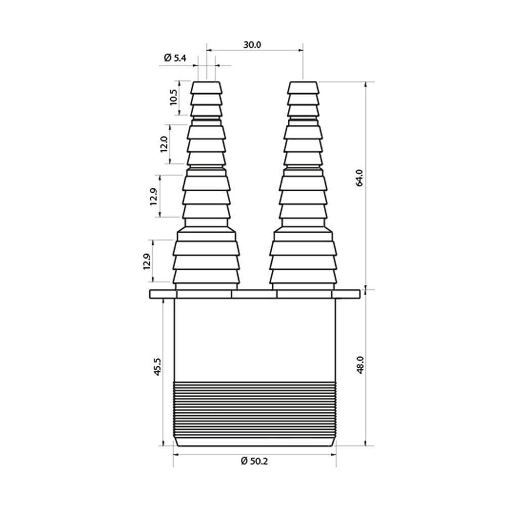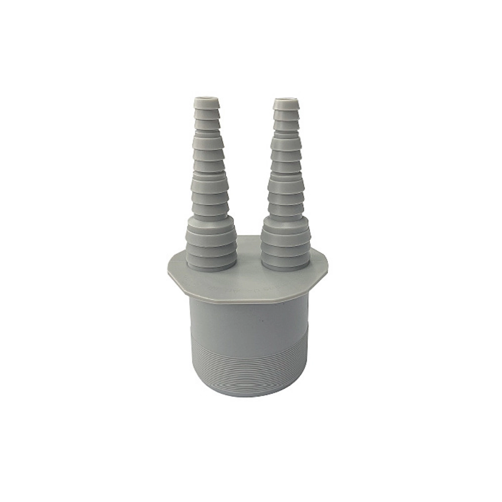 Conector dublu drept pentru furtun, DN 50, proiectat pentru racordarea simultană a două furtunuri cu diametru interior între 8,3–20,5 mm. Fabricat integral din polipropilenă 100% reciclabilă, cu rezistență mecanică ridicată, rezistență chimică și stabilitate termică de la 0 °C până la +90 °C. Nervurile de fixare asigură etanșeitate sigură, prevenind alunecarea furtunurilor. Soluție eficientă pentru aplicații HVAC care reduc amprenta de CO₂ și consumul de energie primară.