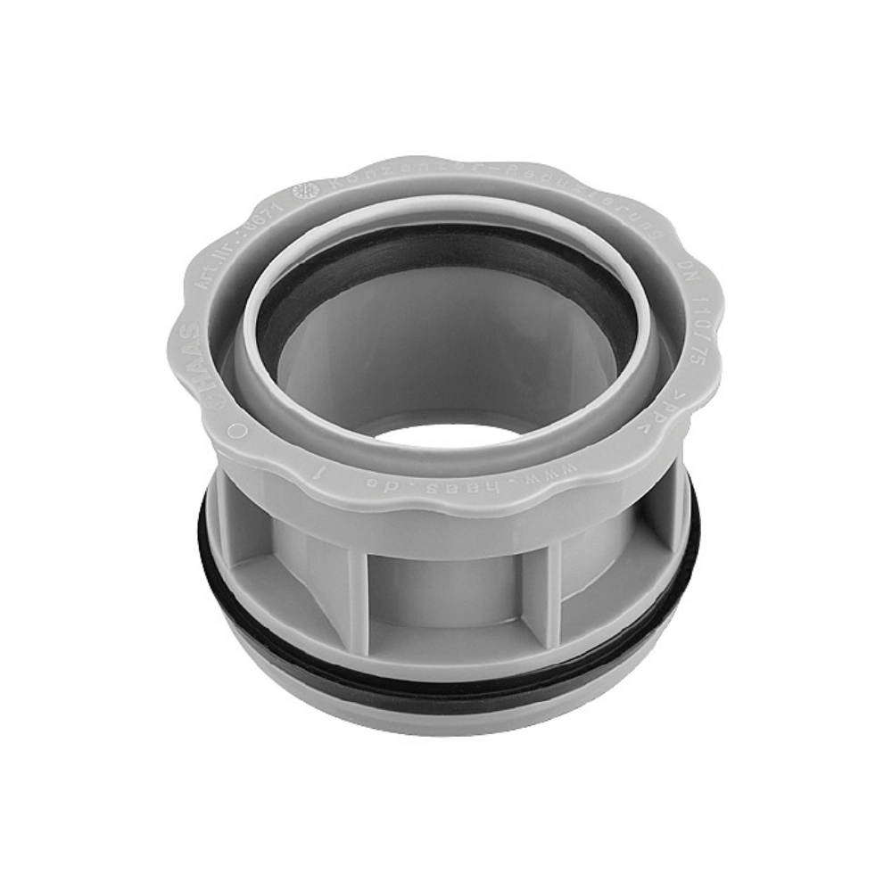 Reducție internă OHA-RDST DN 110/75 pentru țevi de canalizare HT fără mufă, destinată inserției directe la capătul de țeavă, ideală pentru renovări și adaptări rapide. Corpul este fabricat din polipropilenă rezistentă la impact, conform standardului EN 1451-1, cu garnituri elastomerice conform DIN EN 681-1. Potrivită pentru aplicații de interior (zona B), seria conductă S20. Oferă siguranță operațională și montaj facil, cu reacție la foc conform DIN 4102-1 (B2), normal inflamabil.