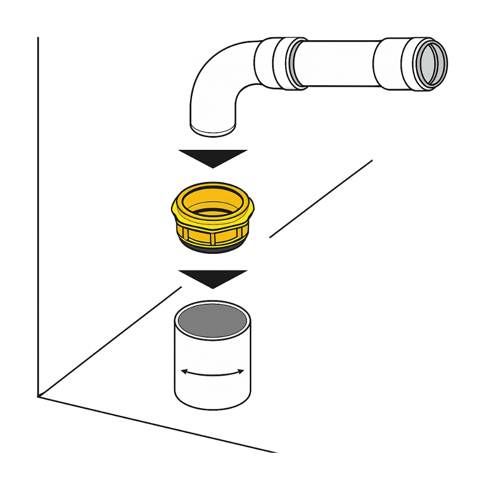 Reducție internă OHA-RDST DN 110/90 pentru țevi de canalizare HT fără mufă, destinată inserției directe în capătul de țeavă. Fabricată din polipropilenă rezistentă la impact, respectă standardul EN 1451-1 și include garnituri elastomerice conform DIN EN 681-1. Este potrivită pentru lucrări de renovare sau modernizare a sistemelor de evacuare, fiind rapidă la montaj și oferind etanșeitate optimă. Îndeplinește cerințele de reacție la foc conform DIN 4102-1 (B2), normal inflamabil.