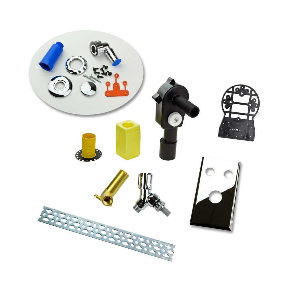 Corpul este prevăzut cu protecție din spumă PE fără HBCD, asigurând montaj rapid și sigur. Gâtul lung de fixare facilitează instalarea în perete. Placa frontală este realizată din oțel inoxidabil cu finisaj lucios, având dimensiunea 220 x 120 mm, și este livrată cu un dop orb inclus. Racordul pentru furtun este realizat în unghi, pentru diametre de la 3/4" (19 mm) la 1" (23 mm), cu piuliță de fixare din polipropilenă rezistentă la șoc, cromată. Setul include șină de montaj și placă de montaj cu proprietăți fonoabsorbante. În plus, sifonul este prevăzut cu deschidere de curățare pentru întreținere facilă.