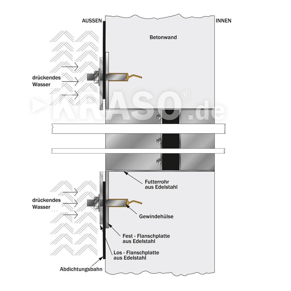 ✔ Etanșare pentru apă sub presiune moderată: Conform DIN 18533 W2.1 -E, pentru coloane de apă de până la 3 metri.