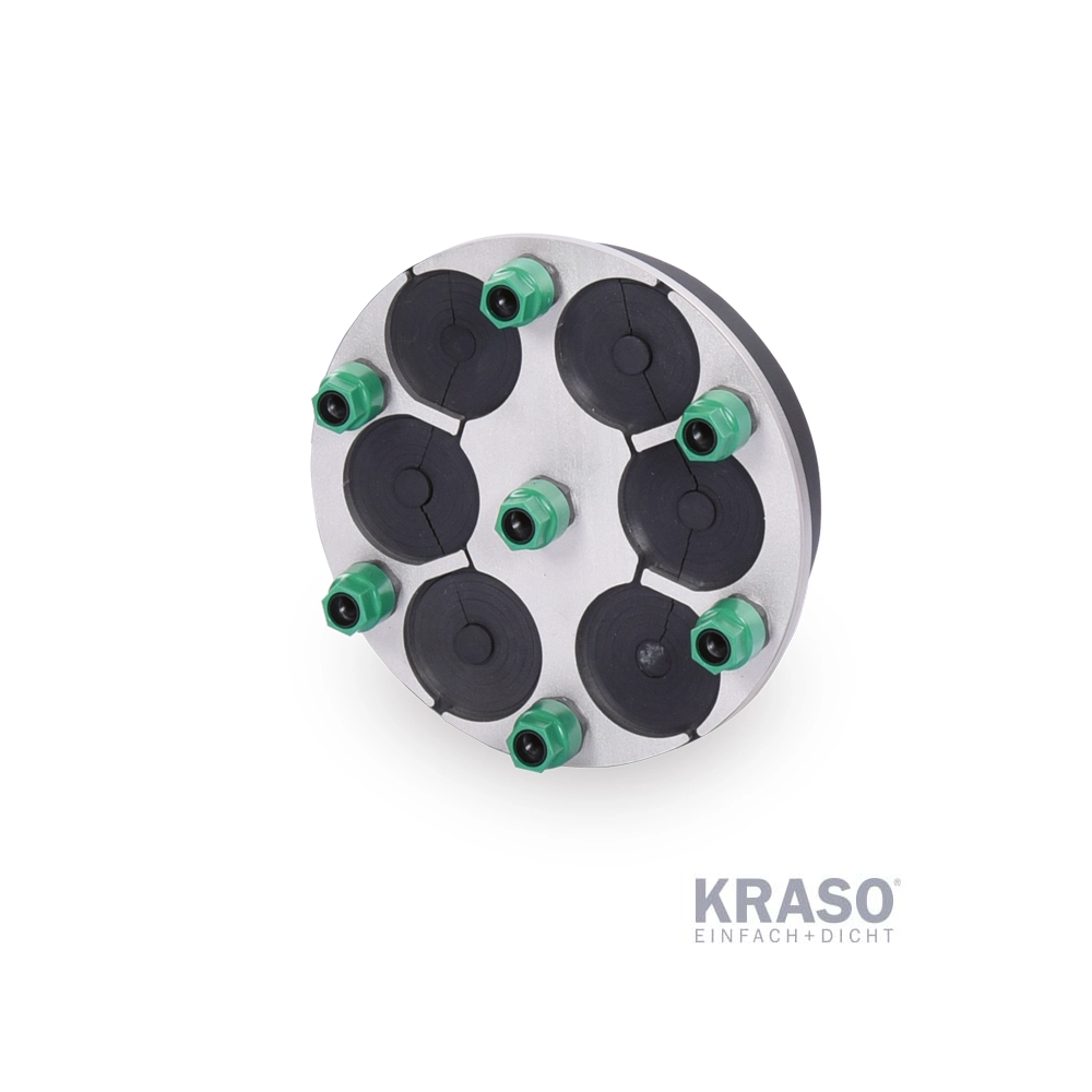 Inel de etanșare KRASO cu flanșă mare, utilizabil atât pentru introducerea, cât și pentru scoaterea conductelor, ex. pentru stații de încărcare din ansambluri rezidențiale (conform WEMoG).