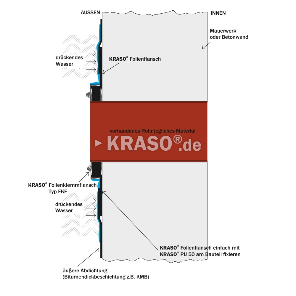 ✔ Inovator: Etanșare rezistentă la presiunea apei pentru orice cablu stabil și uniform, utilizând flanșa pentru folie KRASO FKF.