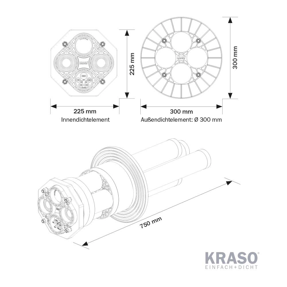 Potrivit pentru carotaj și tub de protecție DN 200 (199 - 203 mm), utilizabil în pereți prefabricați și din beton turnat.