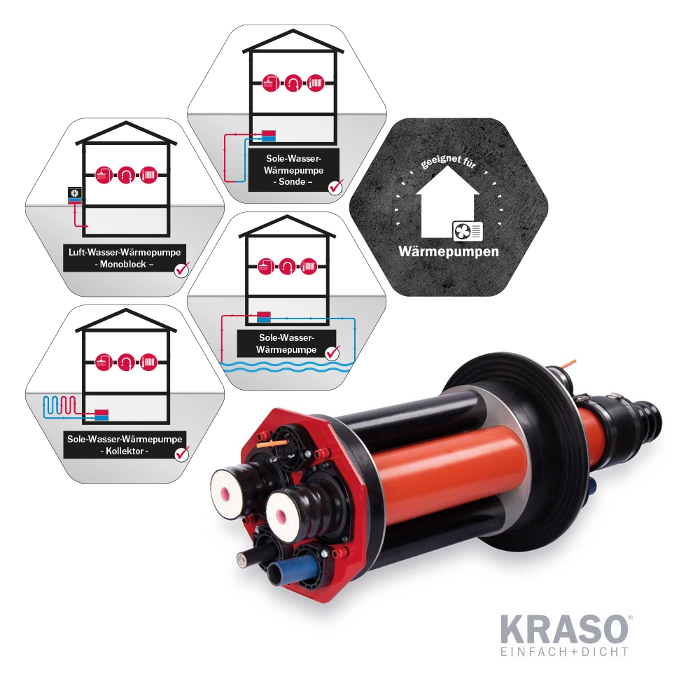 Include toate componentele necesare pentru racordarea sigură a pompei de căldură, încălzirii locale, de cartier sau geotermale, apei, curentului și telecomunicațiilor.