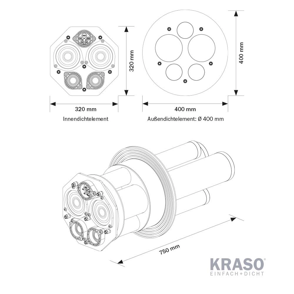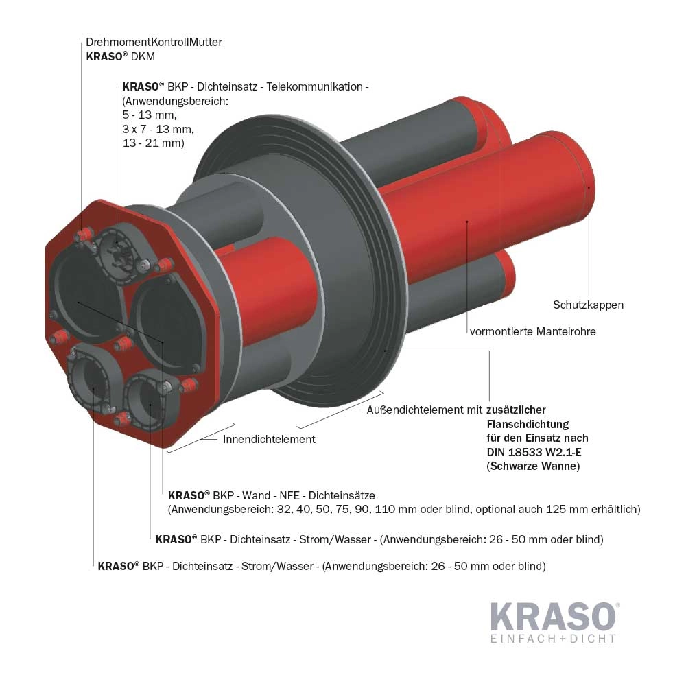 Potrivit pentru carotaj și tub de protecție DN 300 (299 - 303 mm), utilizabil în pereți prefabricați și din beton turnat.