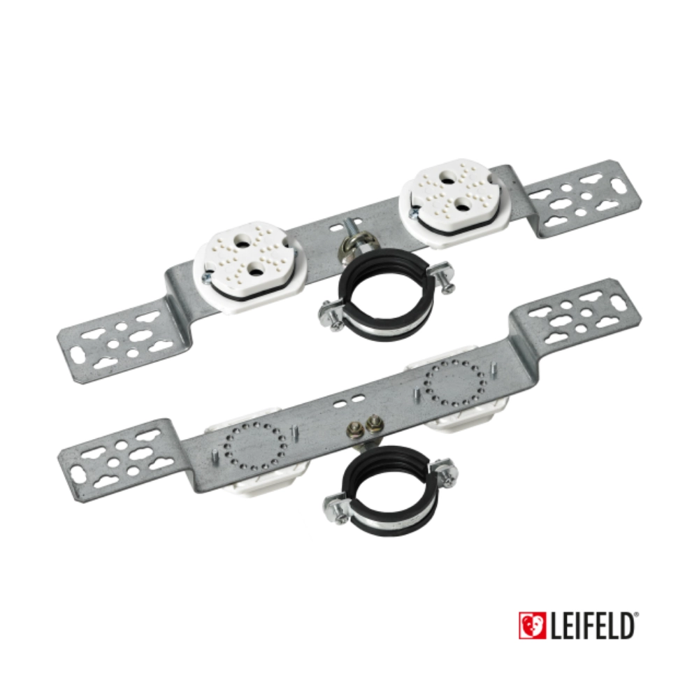 LEIFELD SaniMount este un suport de montaj robust, cu grosimea de 2,5 mm și adâncimea de 33 mm, proiectat pentru coturi de perete cu prindere de 40 mm. Este compatibil cu distanțele standard între centre de 153 mm, 120 mm, 100 mm și 80 mm. Permite rotirea coturilor de perete în trepte de 22,5 grade și fixarea acestora cu șuruburi M5. Este prevăzut cu orificii pre-găurite pentru fixarea unui sifon utilizând clema de cablu LEIFELD, o tijă filetată și un colier pentru conducte. Pachetul conține un singur suport.