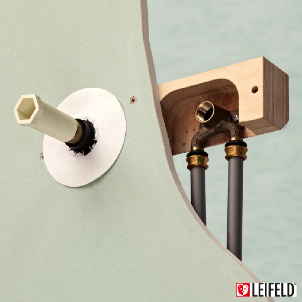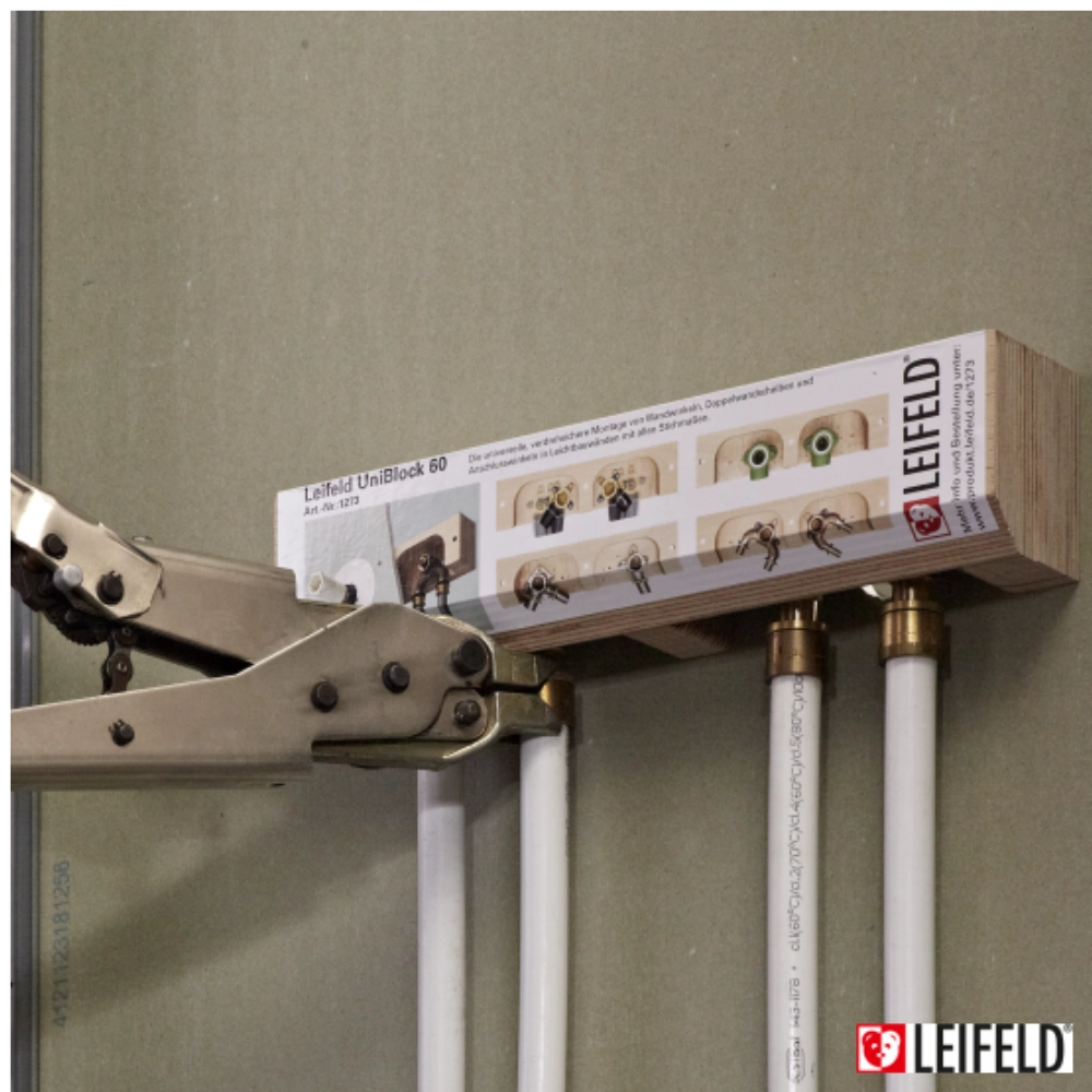 LEIFELD UniBlock este ideal pentru montarea sigură și stabilă a coturilor duble și simple în pereți de montaj, asigurând alinierea perfectă la centrele sanitare standard de 80, 100, 120, 153 și 160 mm. Fabricat din placaj marin rezistent la apă, conform standardului DIN 68704, acest produs oferă o soluție durabilă pentru aplicații sanitare profesionale. Pachetul conține o singură piesă.