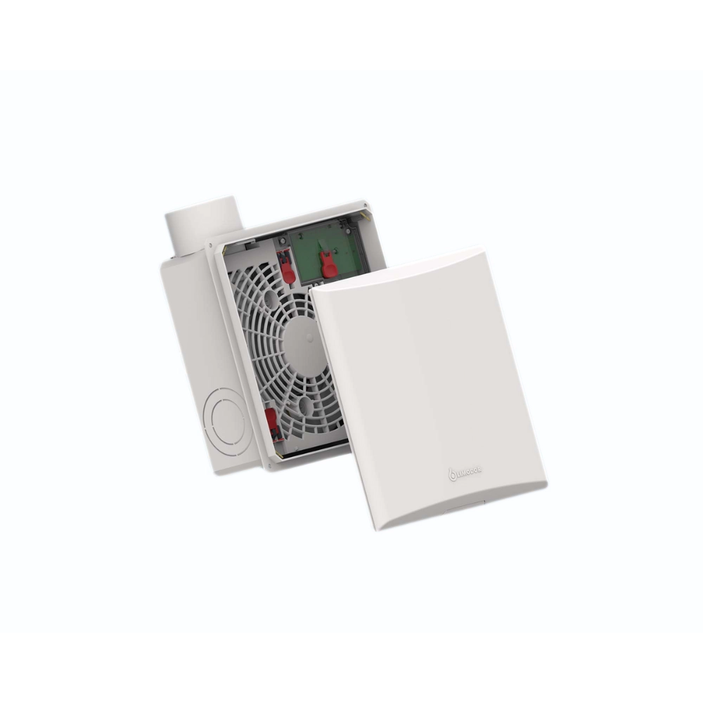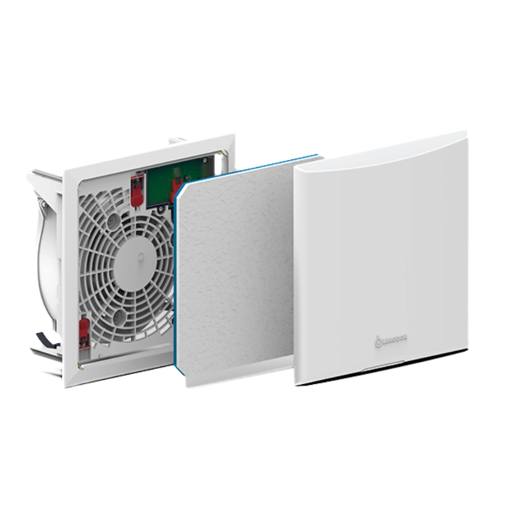 Ventilatorul de evacuare pentru baie LIMODOR LF/M-EC este echipat cu tehnologie EC de înaltă eficiență, oferind un consum energetic redus cu până la 50% față de modelele convenționale. Acesta permite setarea debitului de aer în mai multe trepte: 15 / 20 / 30 / 40 / 60 / 100 m³/h, cu ajustări realizate ușor prin comutatoare DIP pe placa de control.