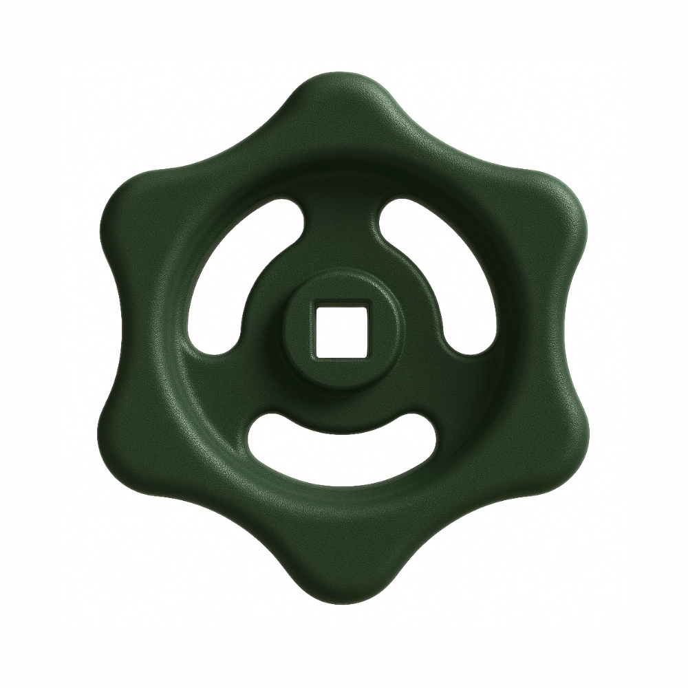 Mâner rotund din poliamidă (PA) verde, compatibilă cu robinetele SEPP Markt. Construcție ușoară, fără presiune nominală, utilizabilă pentru ventilele de apă potabilă în domeniul civil și industrial.