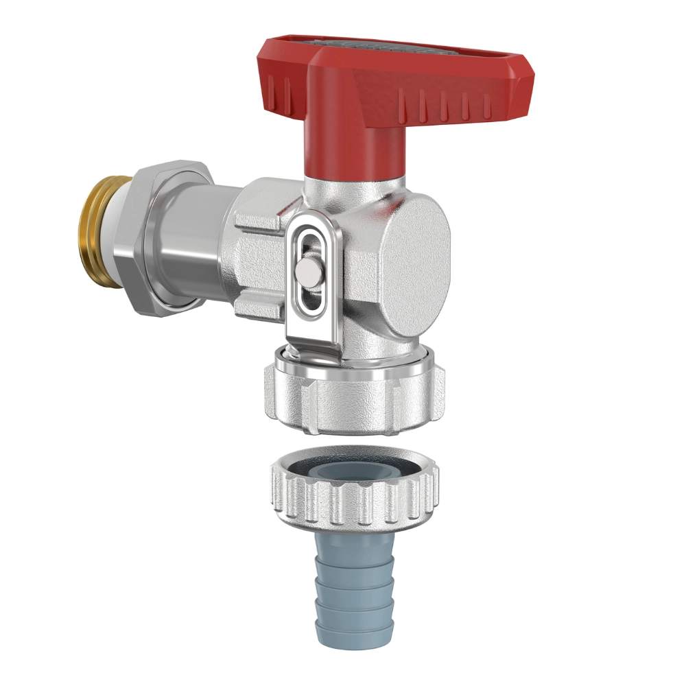 Flamco Simplex - Robinet KFE-KH lung E SV cu supapă de siguranță, cu filet exterior 1/2" și racord 3/4"