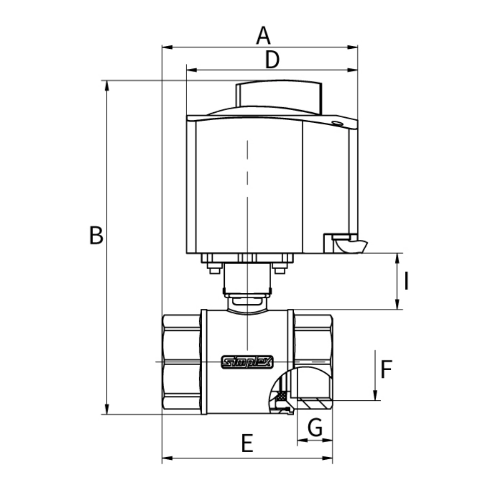 Robinet sferic cu acționare electrică pentru instalații de încălzire cu apă conform VDI 2035, filet interior pe ambele părți. Motor 230 V cu acționare în 3 puncte, unghi de rotație 90°, timp acționare 135 sec. | Cuplu 10 Nm | Protecție IP42, Clasa II. Bila cu placare dură din crom, etanșare PTFE, tijă alamă cu garnitură dublă O-ring. Recomandare: utilizare în sisteme unde este necesar control automatizat al debitului. Compatibil cu izolații termice (carcase disponibile opțional).