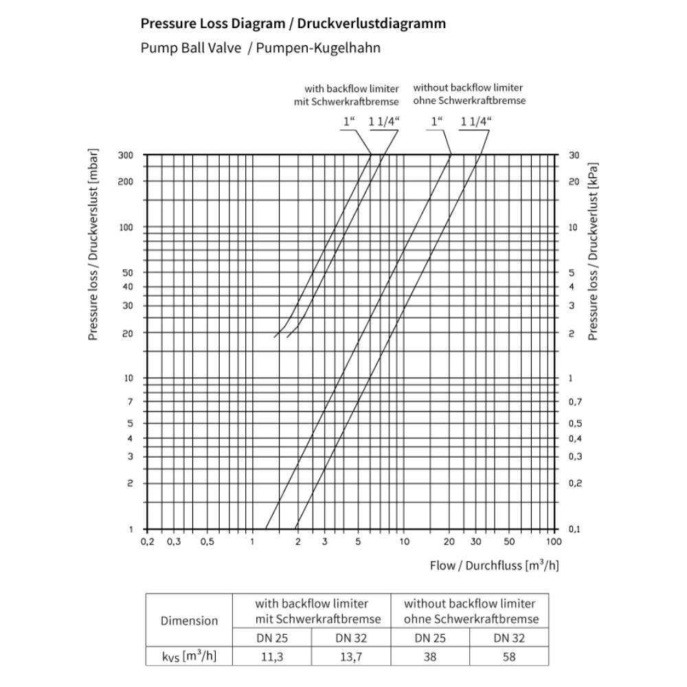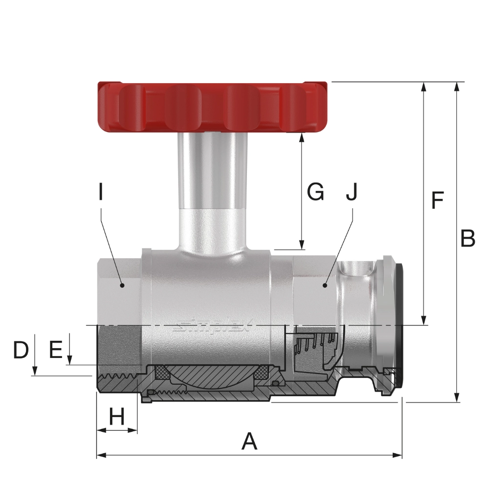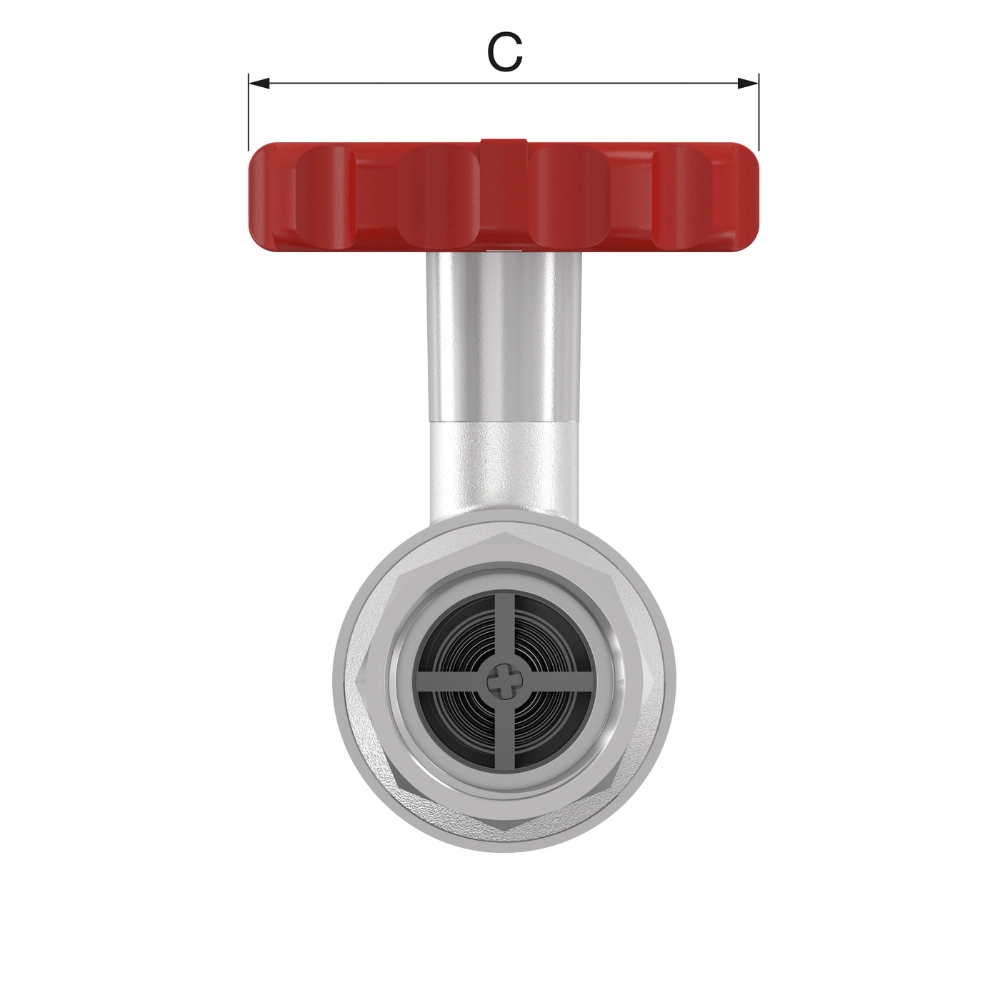 Robinet sferic de închidere cu termometru Ø 63 mm încorporat în mânerul rotund roșu, utilizat pe partea de refulare a pompelor de circulație, cu limitator de retur integrat și dispozitiv de deschidere (nu acționează ca supapă de reținere). Conexiune la pompă cu flanșă și garnitură plană integrată, conexiune la țeavă cu filet interior. Recomandare: pentru robinete utilizate static, se recomandă acționarea periodică pentru a preveni blocarea. Compatibil cu accesorii de izolație și piulițe de cuplare. Fabricat conform VDI 2035, PN 16.
