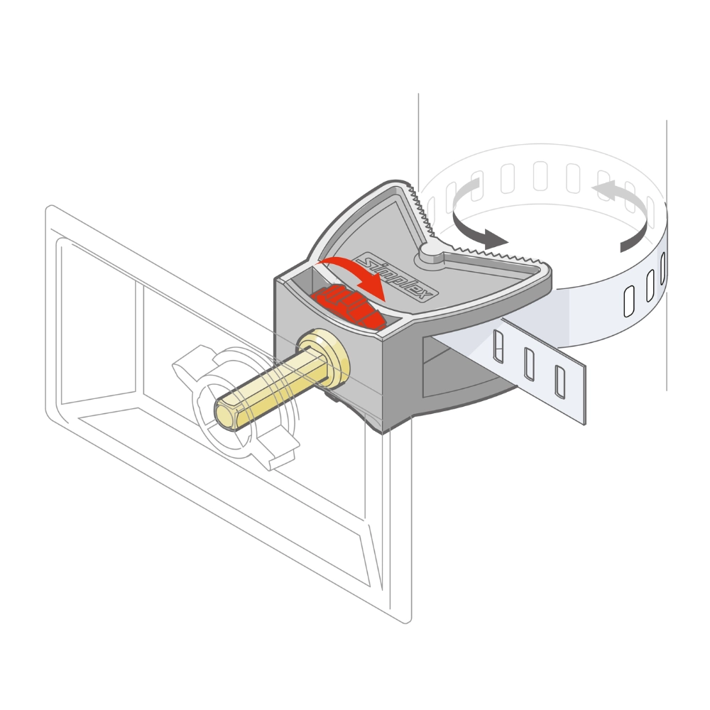 Suport universal pentru etichete, realizat din oțel inoxidabil 1.4016 și plastic rezistent la temperaturi ridicate. Include capac transparent și bandă de fixare pentru montaj pe țevi de până la 2". Permite atașarea verticală sau orizontală a plăcuțelor de identificare 100×50 mm, utilizate în aplicații HVAC și instalații industriale. Instalare rapidă, fără unelte. Plăcuța de semnalizare este detașabilă, permițând integrarea cu izolația de țeavă.