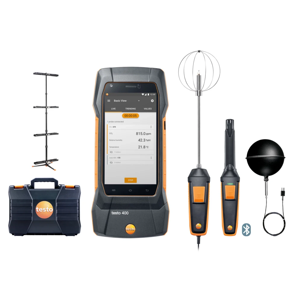 Flexibilitate mare: Setul acoperă toate nevoile de măsurare a calității aerului și confortului termic într-un singur pachet complet.