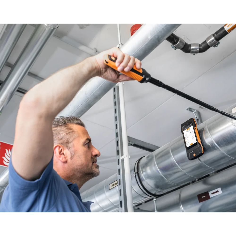 Acest set este ideal pentru măsurători de înaltă precizie în conductele de ventilație, anemostate și alte aplicații legate de calitatea aerului. Măsurătorile de la grile se pot efectua ușor prin combinarea sondei de 100 mm cu telescopul extensibil până la 1 metru și cotul cu unghi de 90°, asigurând astfel accesul facil în locuri greu accesibile.