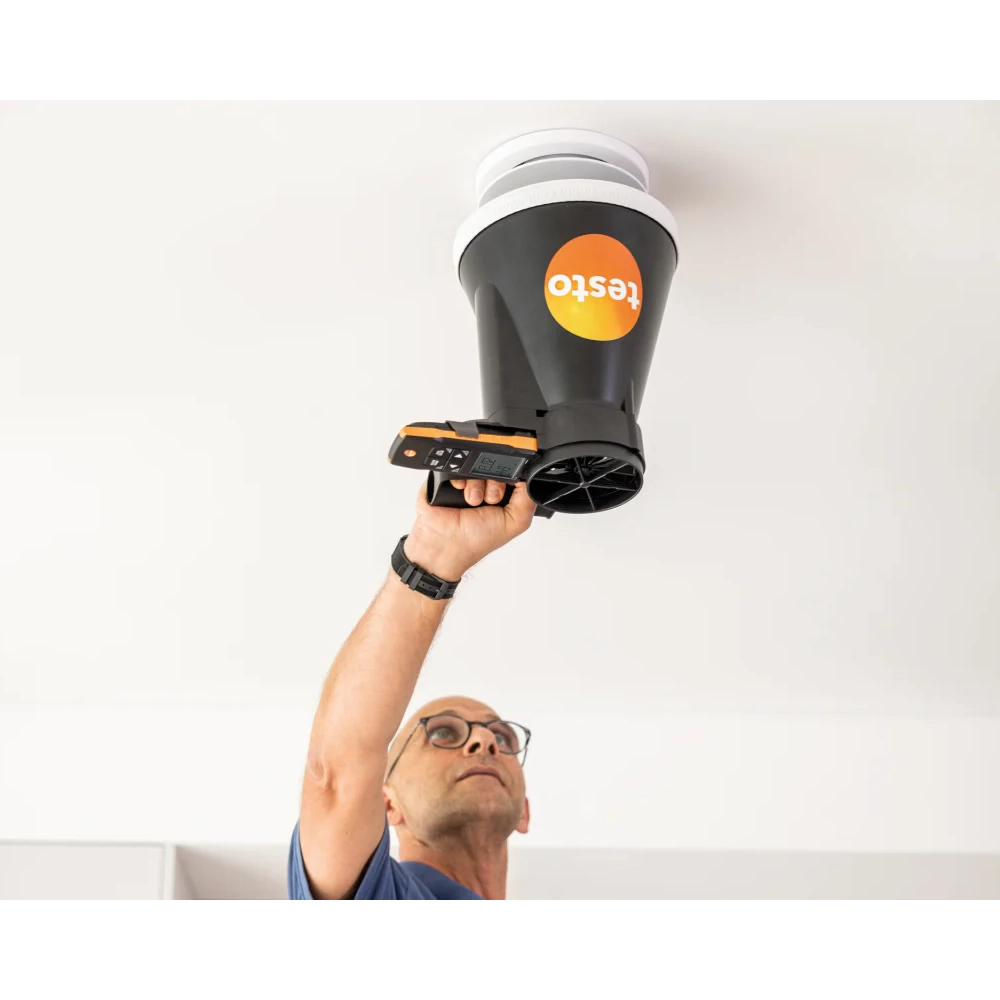 Domeniu de măsură (cu set pâlnie și dreaptor de flux testo 417): 0,1 la +200 m³/h (preferat intervalul 0,1 la 100 m³/h)