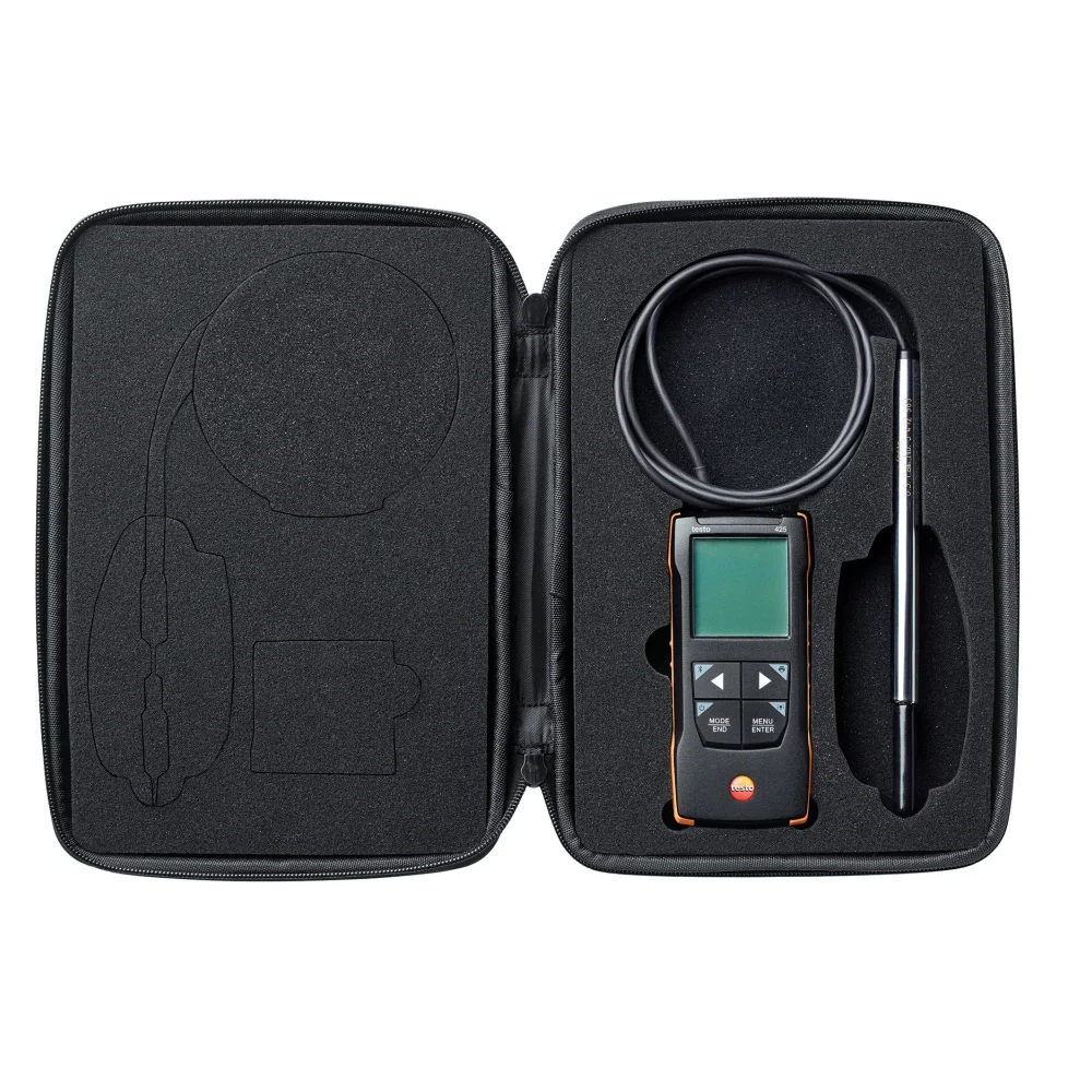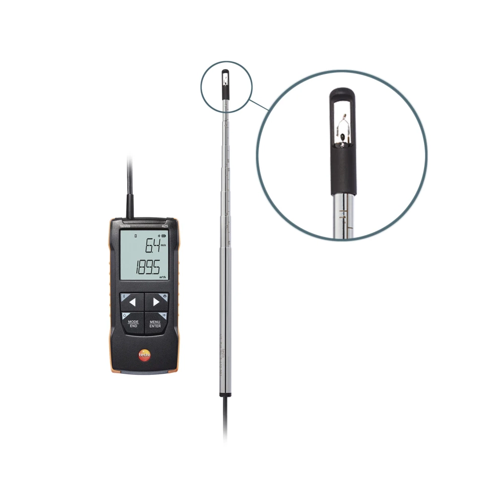 Testo 425 este un anemometru termic cu fir cald extrem de eficient pentru măsurători de viteza aerului, temperatură și debit volumic în conductele de ventilație. Datorită sondelor telescopice, a conexiunii cu aplicația Testo Smart App, și a calculelor automate, acest instrument este indispensabil pentru profesioniștii care se ocupă de întreținerea și optimizarea sistemelor de ventilație și aer condiționat.