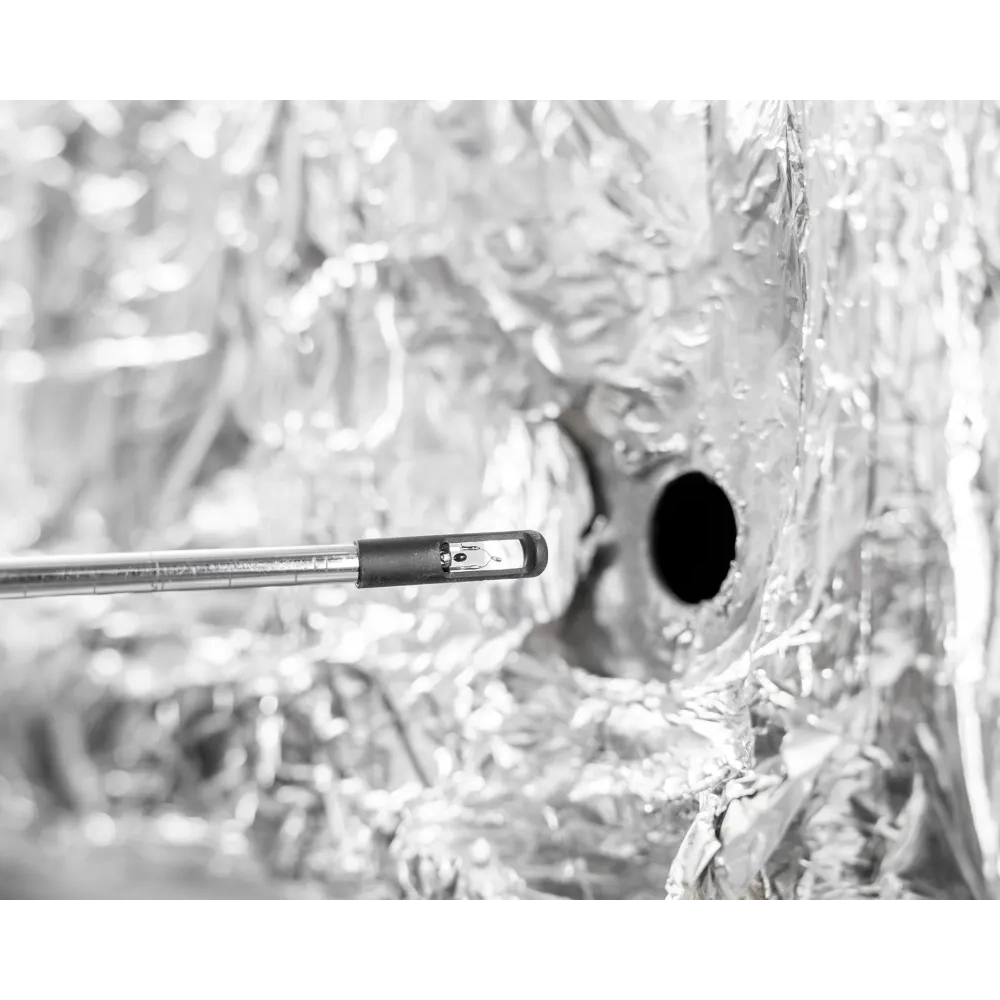 Sondă telescopică extinsibilă: Cu o lungime maximă de 820 mm, sonda telescopică conectată prin cablu permite măsurători în conducte de mari dimensiuni sau în locuri greu accesibile.