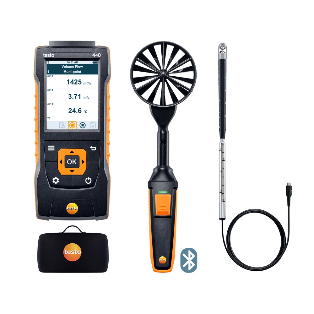 Instrument testo 440: Instrument complet pentru măsurători precise ale vitezei aerului și calității aerului ambiental, esențial pentru profesioniștii din domeniul ventilației.