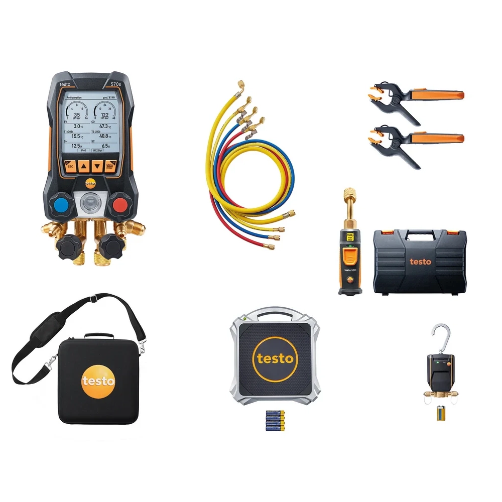 Acest set profesional oferă toate funcționalitățile necesare pentru lucrări eficiente la pompe de căldură, sisteme de refrigerare și climatizare.