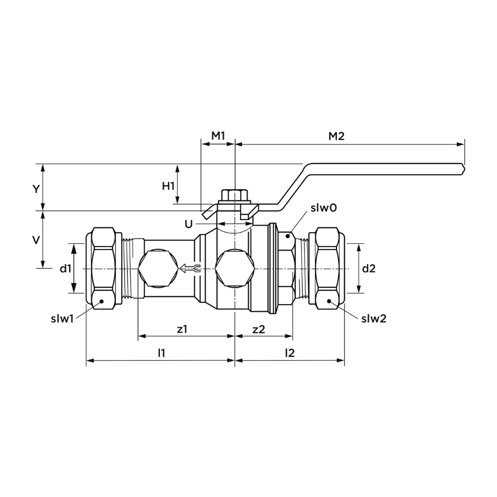 - DN20: d1 = d2 = 22.0 mm, l1 = 65 mm, z1 = 41 mm, slw1 = slw2 = 32 mm, slw0 = 30 mm