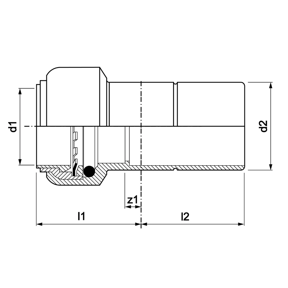 • Ø28x15 – Ø1: 15.0 mm, DN1: DN12, L1: 22 mm | Ø2: 28.0 mm, DN2: DN25, L2: 33 mm