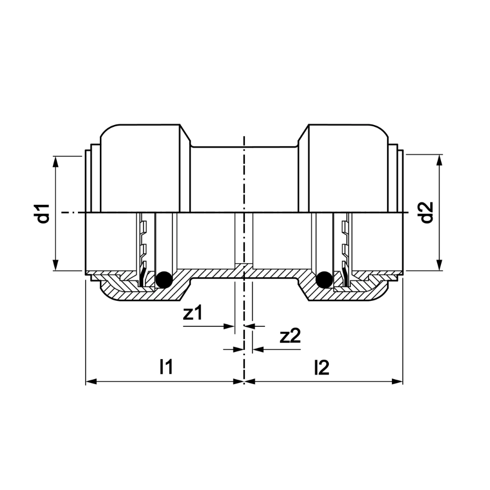 Mufa dreaptă cromată VSH Tectite cu conexiuni 2 x push este ideal pentru imbinari rapide in instalatii de incalzire si apa potabila. Fabricat din alama DZR cu finisaj cromat, permite montaj fara unelte. Etansare EPDM, demontabil, presiune max. 16 bar, temperatura -24°C...95°C.