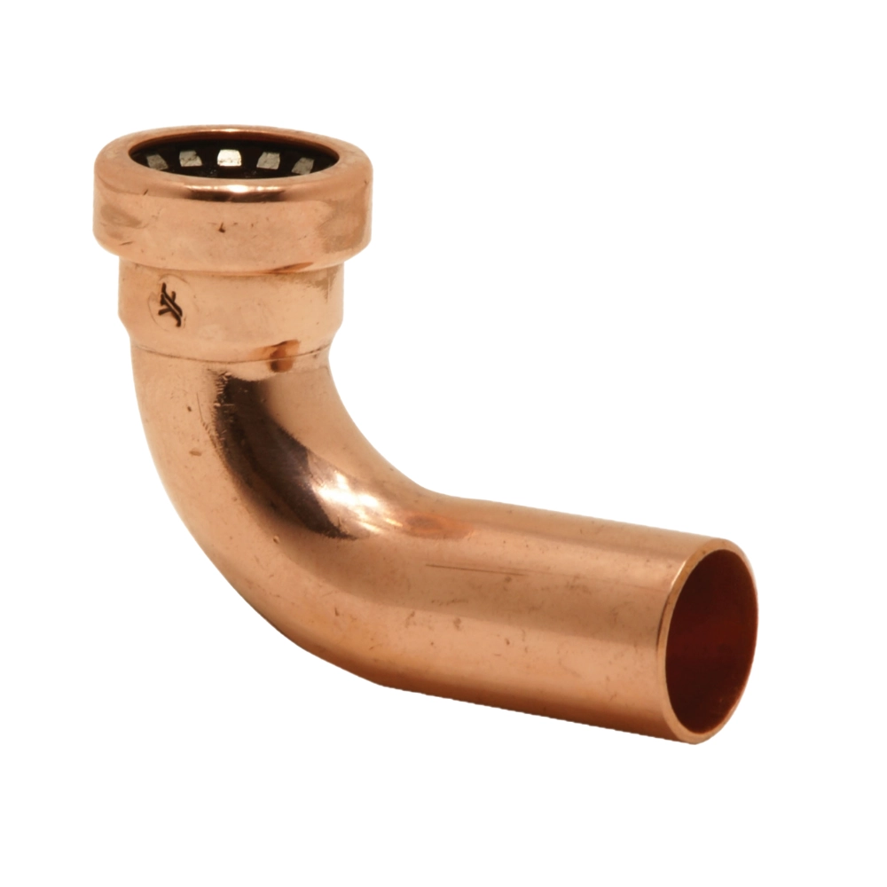 Cot la 90° cu o conexiune push-fit și un racord țeavă (male), din cupru CW024A. Ideal pentru aplicații de apă potabilă, încălzire și răcire. Instalare rapidă, fără unelte. Certificări: WRAS, DVGW, KIWA.
