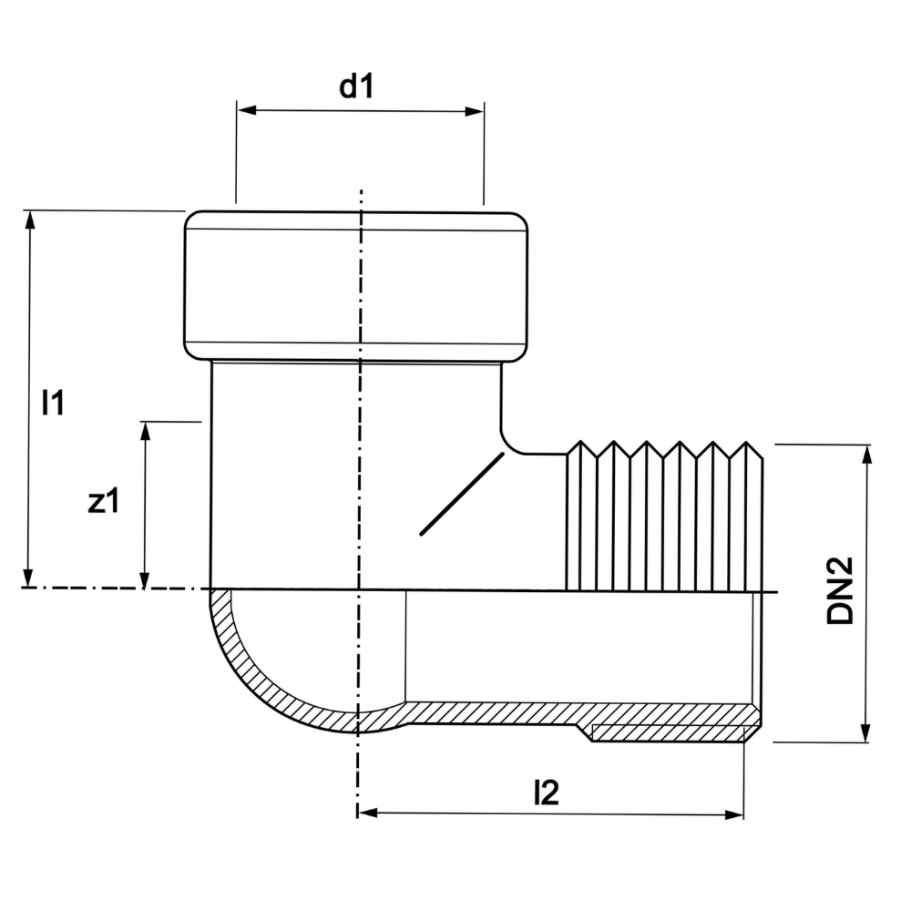 • 22xR3/4" – Ø: 22.0 mm, DN: DN20, L1: 48 mm, Z1: 20 mm, Filet: G3/4