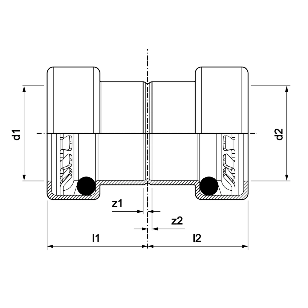 • DN15 – Ø1: 15.0 mm, L1: 17 mm | Ø2: 15.0 mm, L2: 17 mm