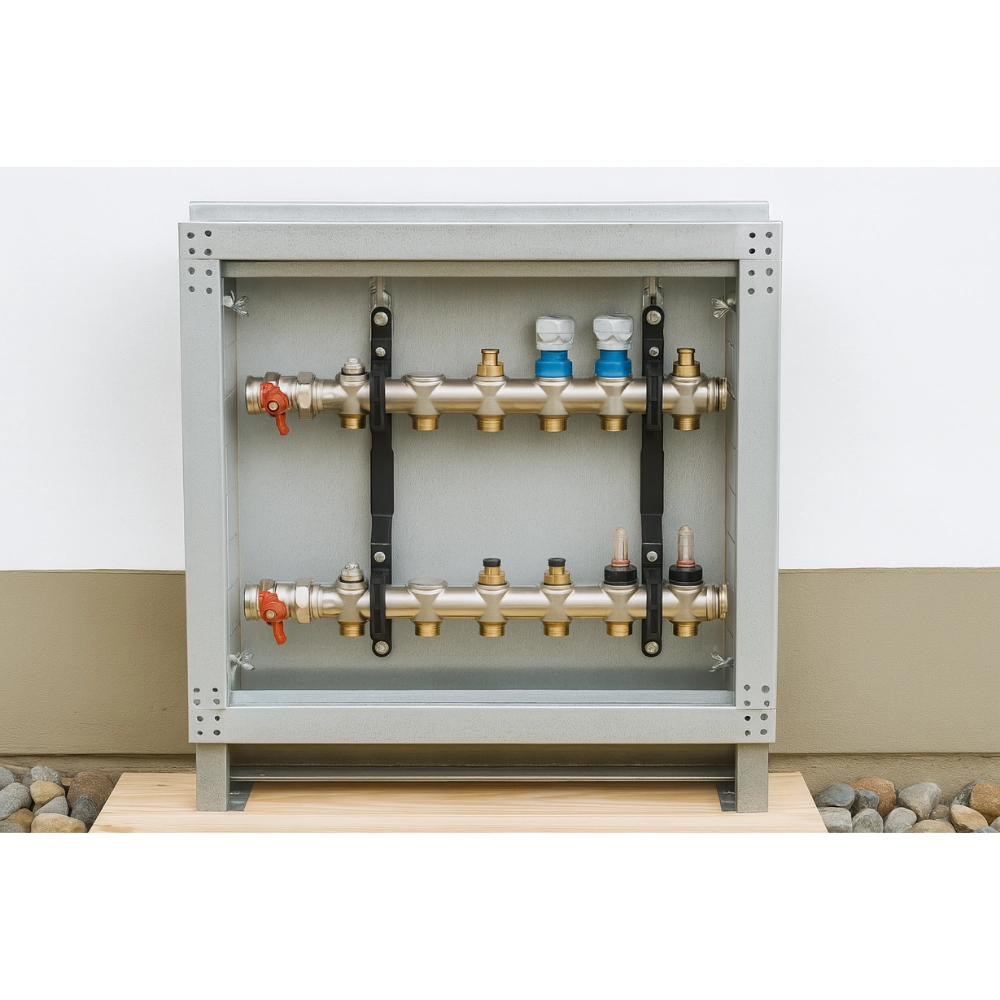 ✔ Aplicații: suport pentru distribuitoare în circuite de încălzire în pardoseală