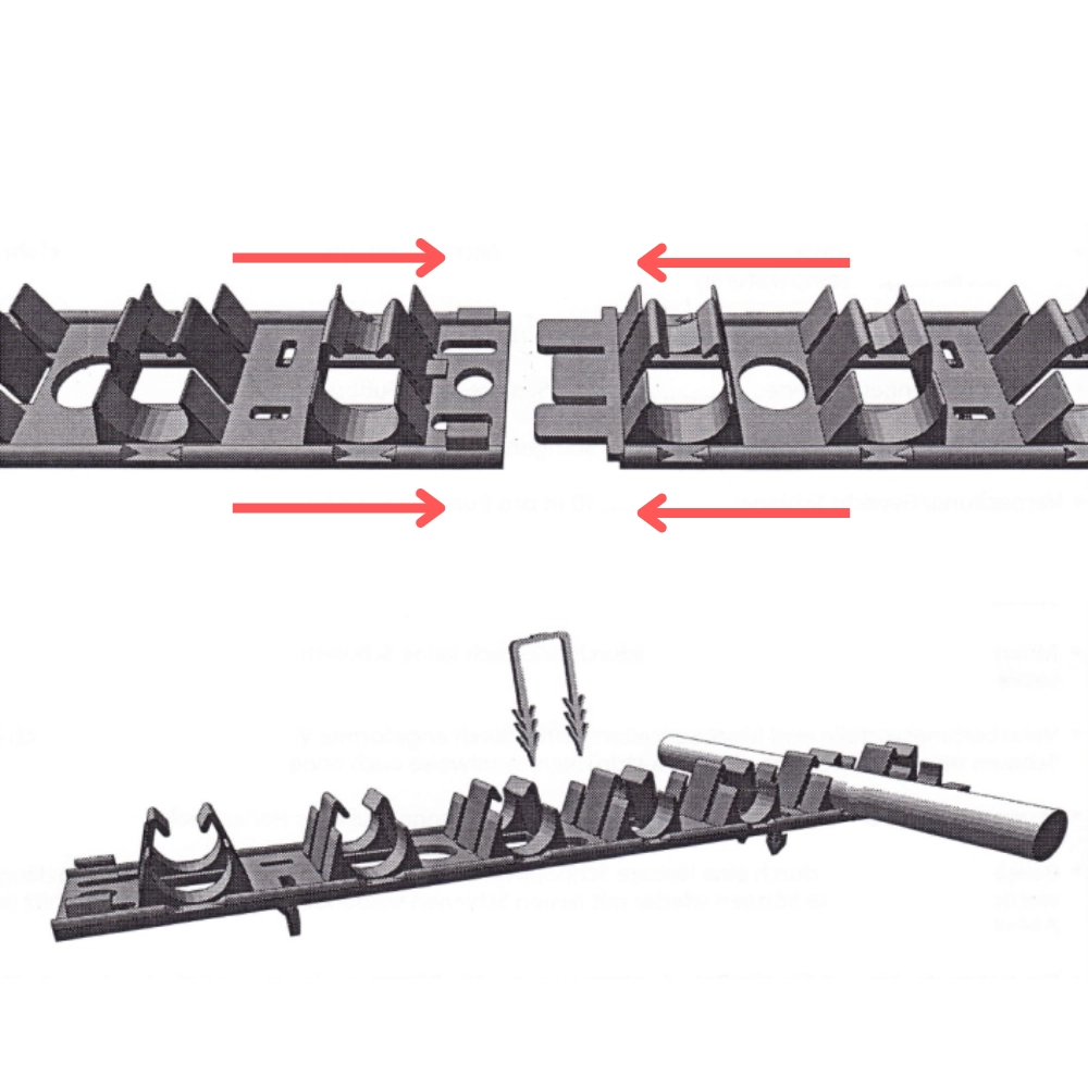 WINKLER TECHNIK – Șină pentru țeava de încălzire în pardoseală Ø16–20 mm cu bandă adezivă CFS1620K (1 m)