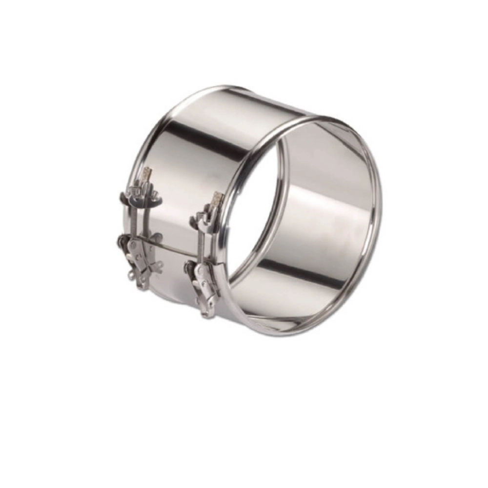 Prindere cu clemă, utilizată pentru blocarea și etanșarea conexiunii, cu diametrul D = 180 mm, dotată cu sistem rapid de prindere reglabil.