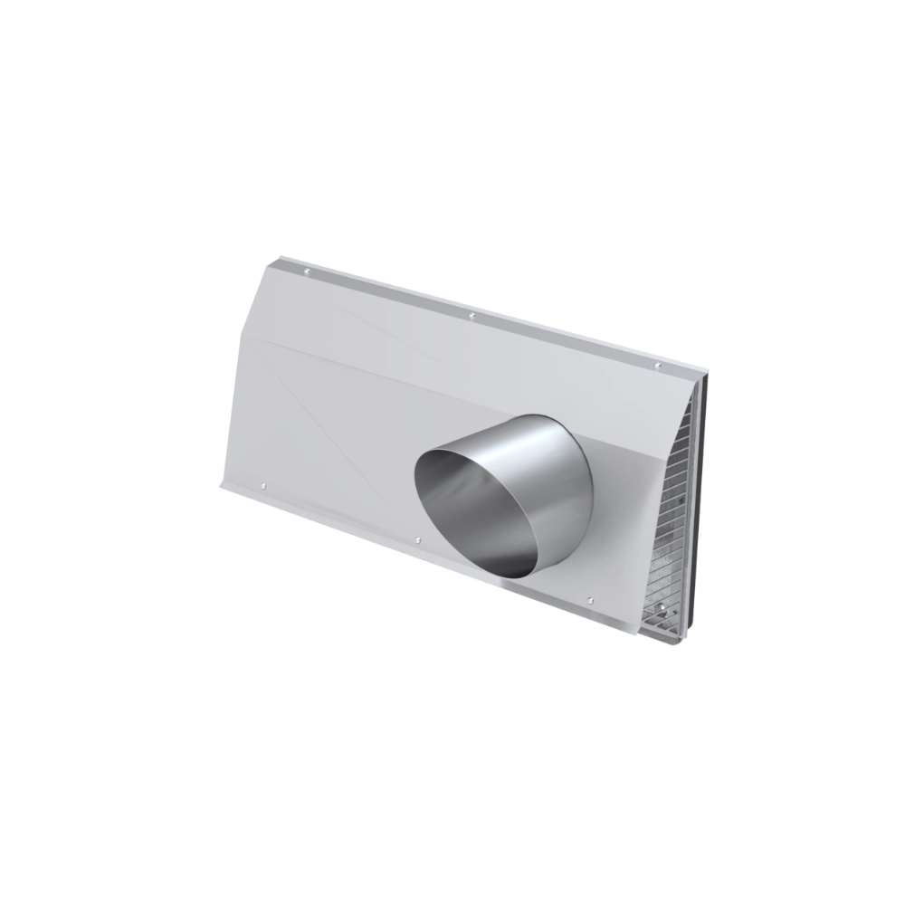 Grilă de perete externă combinată DN 160, pentru conexiunea compactă a aerului proaspăt și aerului evacuat într-un singur element, cu debit nominal de până la 300 m³/h. Disponibilă în variantele: