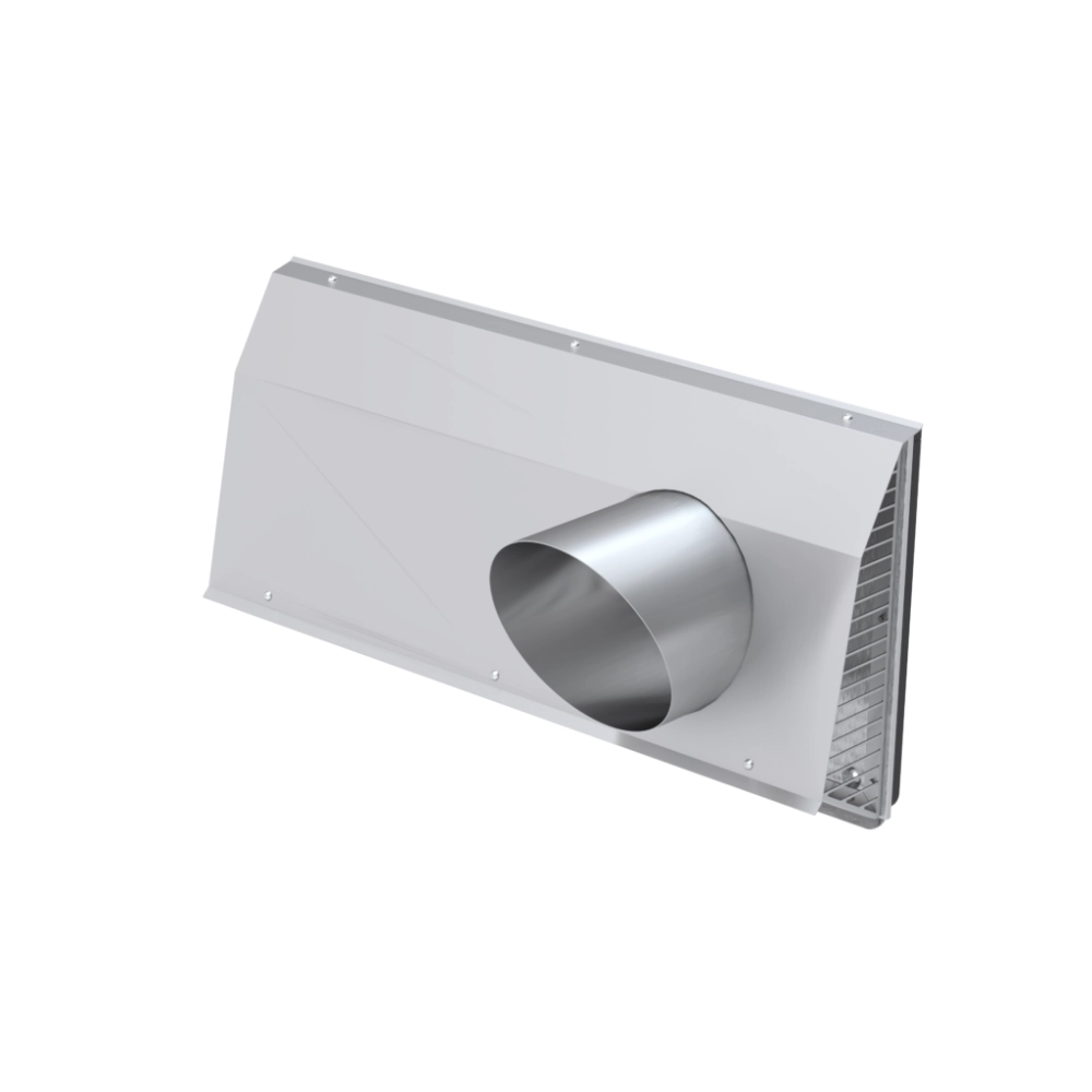 Grilă de perete externă combinată ComfoEdge DN 200, pentru conexiunea compactă a aerului proaspăt și aerului evacuat într-un singur element, cu debit nominal de până la 400 m³/h. Dimensiuni exterioare: 676 x 337 x 212 mm. Distanța găurilor de găurire, de la centru la centru: 328,5 mm. Diametrul minim al găurii: 240 mm (pentru ComfoPipe Compact), 290 mm (pentru ComfoPipe Plus). Disponibilă în variantele: