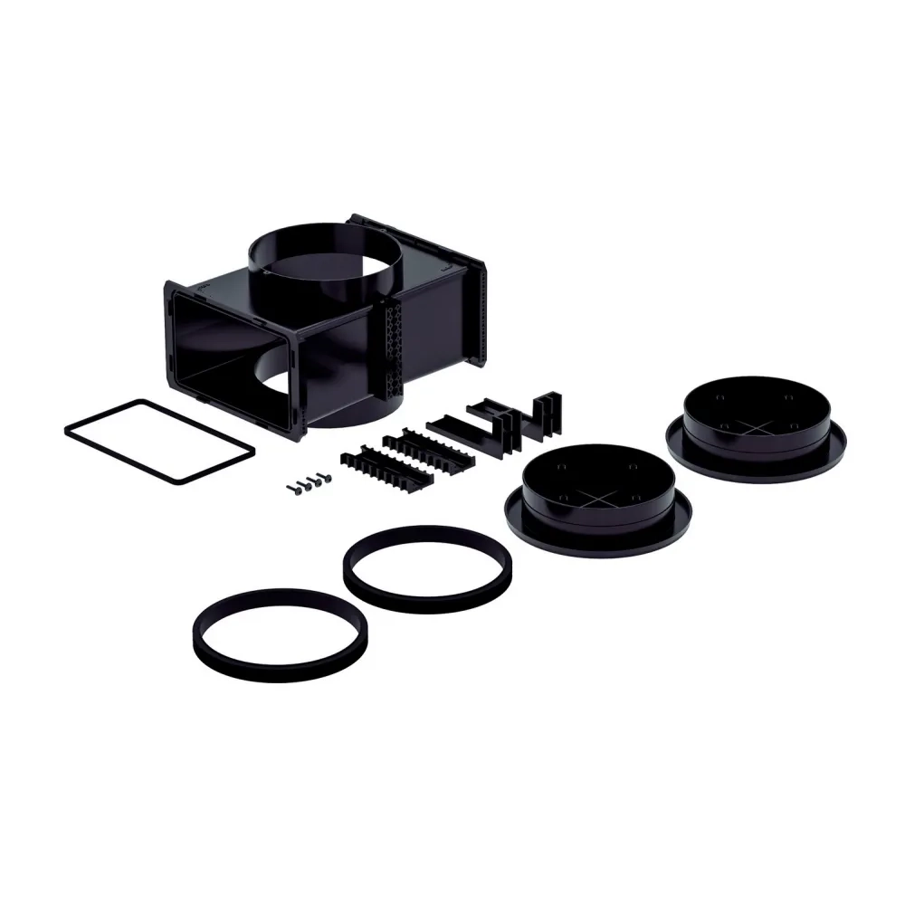 Modulul de conductă ComfoCube Flex DN160 este conceput pentru a facilita conexiunile superioare sau inferioare într-un sistem de ventilație. Acesta include toate accesoriile necesare pentru instalare: un set de benzi de prindere, un set de suporturi de montaj, o garnitură pentru modul și două capace de închidere DN160. Cu dimensiuni compacte de 300 x 284 x 134 mm, acest modul oferă o soluție versatilă și eficientă pentru integrarea în sisteme de ventilație complexe.