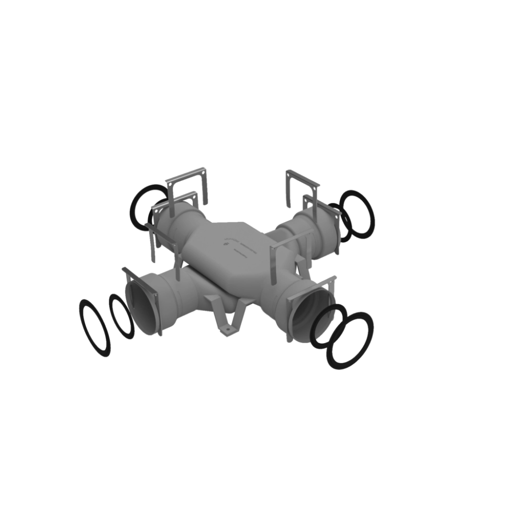 Piesa de încrucișare ComfoTube 75/90 este proiectată pentru a permite traversarea conductelor de ventilație ComfoTube 75 sau 90. Aceasta oferă o soluție practică și eficientă pentru configurarea sistemelor de ventilație în spații complexe, menținând performanța și integritatea rețelei de conducte.