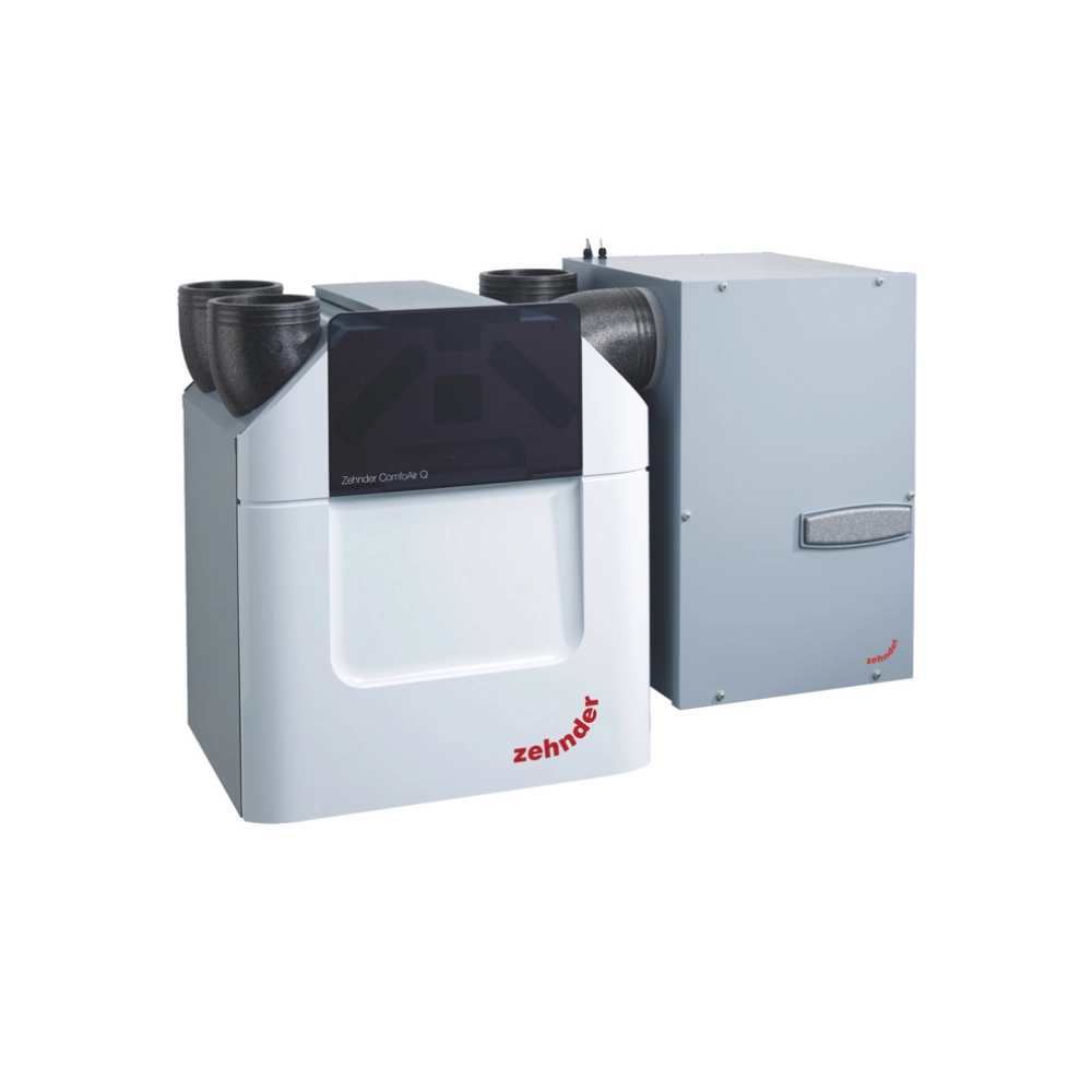 Schimbătorul de căldură, soluție salină - sol ComfoFond-L Q TR este destinat pentru utilizare cu unitățile ComfoAir Q350/450 TR, asigurând un flux de aer proaspăt de până la 450 m³/h. Acesta include un filtru G4 în amonte și toată hidraulica necesară pentru un sistem de ventilație eficient și optimizat. Pentru o integrare completă, sunt necesare accesorii precum cutia opțională pentru ComfoAir Q350/450/600 și sifonul uscat 5/4”. De asemenea, există versiuni disponibile pentru montajul schimbătorului de căldură pe partea stângă (ComfoFond-L Q L TR) și pe partea dreaptă (ComfoFond-L Q R TR) a unității ComfoAir Q350/450 TR.